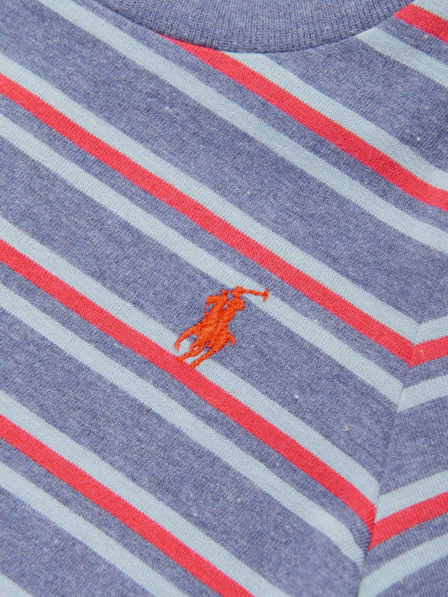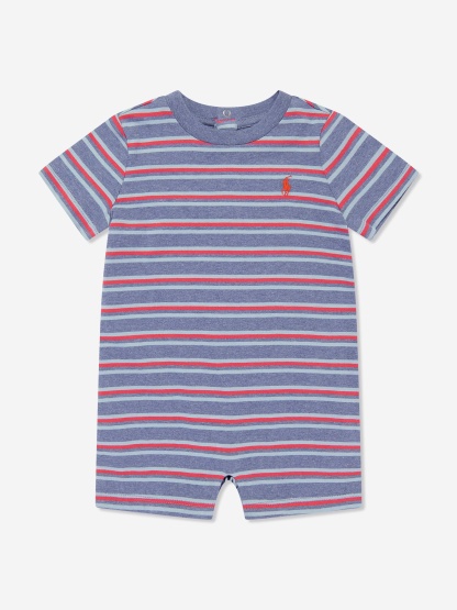 Ralph Lauren capture the American spirit in their Ivy League aesthetics. This baby boys romper in faded royal is incorporated with the finest masterful craftsmanship and detailing. Crafted in beautiful high quality cotton with a stripe design, press-stud fastenings and a round neck.