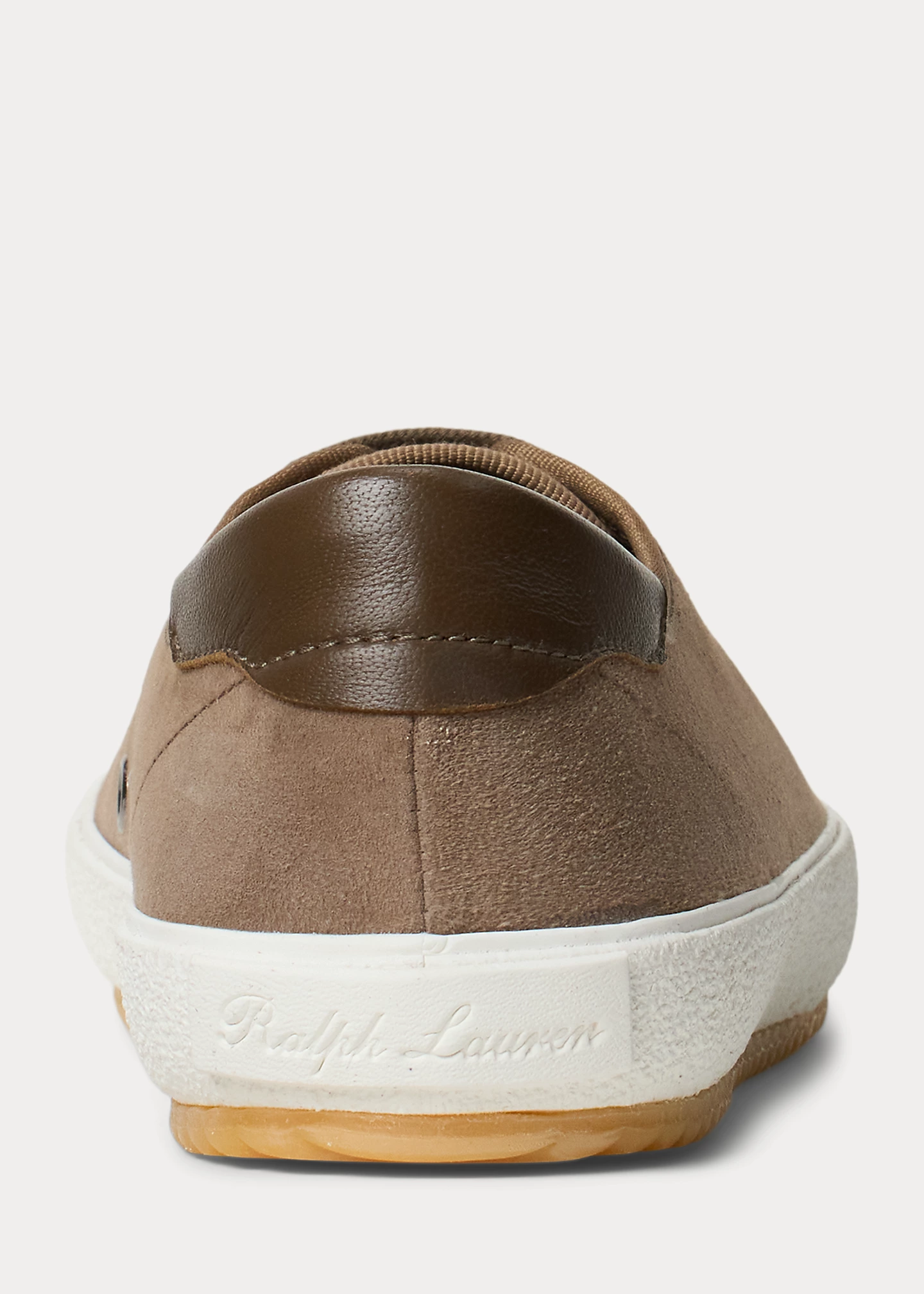 - Goatskin back counter piece. Rubber tag debossed with script “Ralph Lauren.”