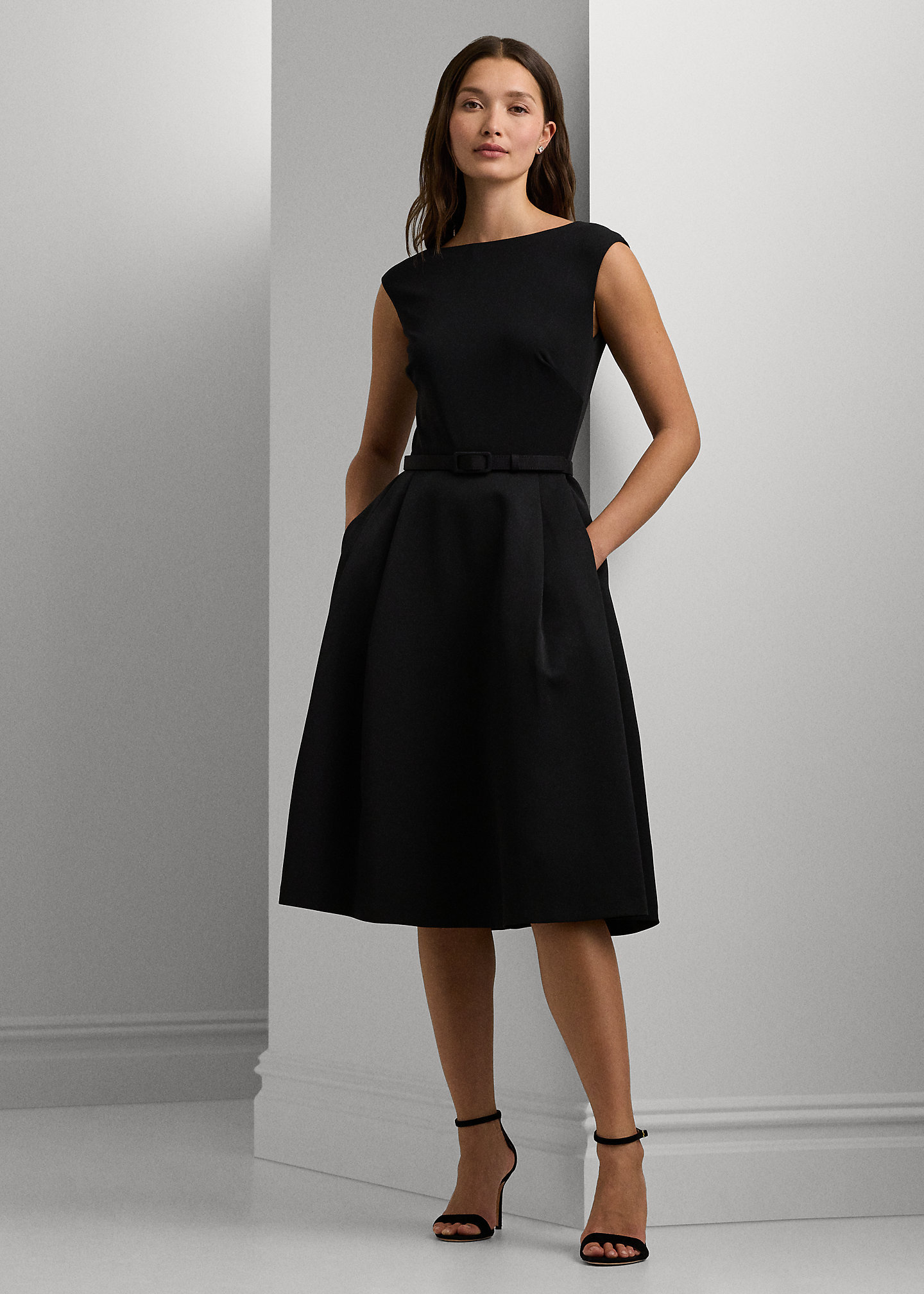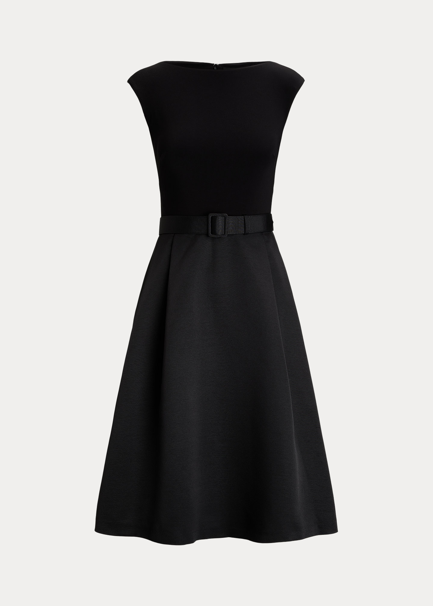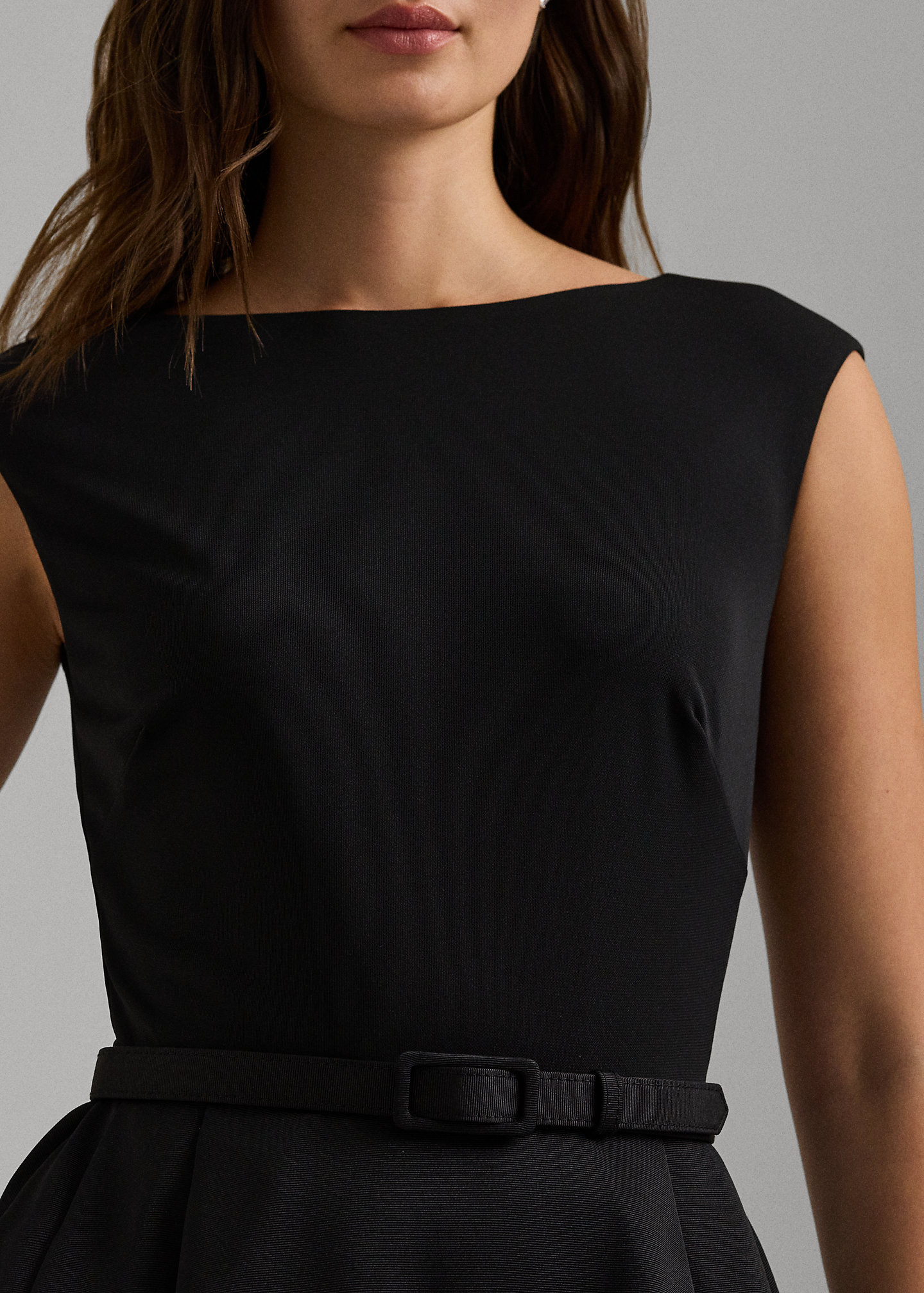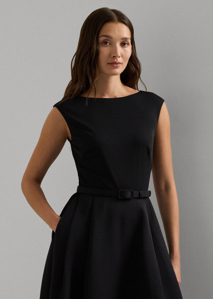 Belted Faille & Jersey Cocktail Dress