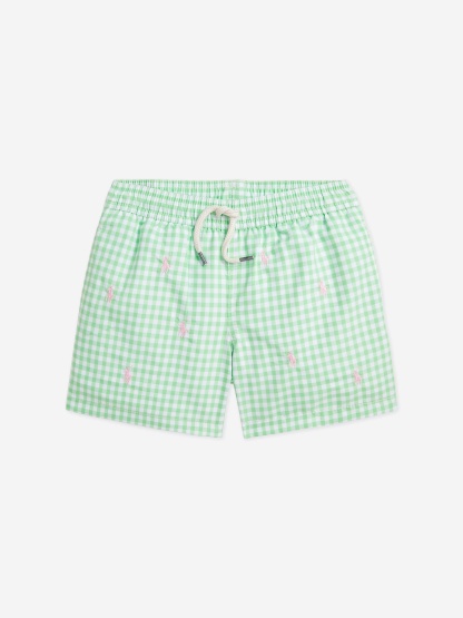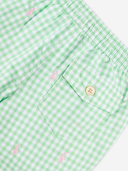Rattglph Lauren Boys Gingham Logo Swim Shorts in Green
