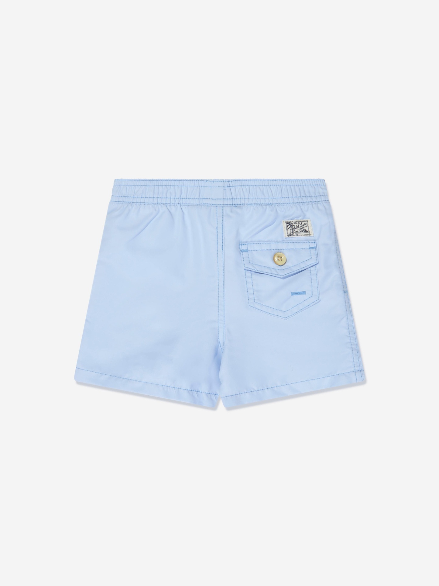 Introducing the Ralph Lauren Boys Logo Swim Shorts in Blue – an epitome of high-end fashion for your young gentleman's holiday wardrobe.