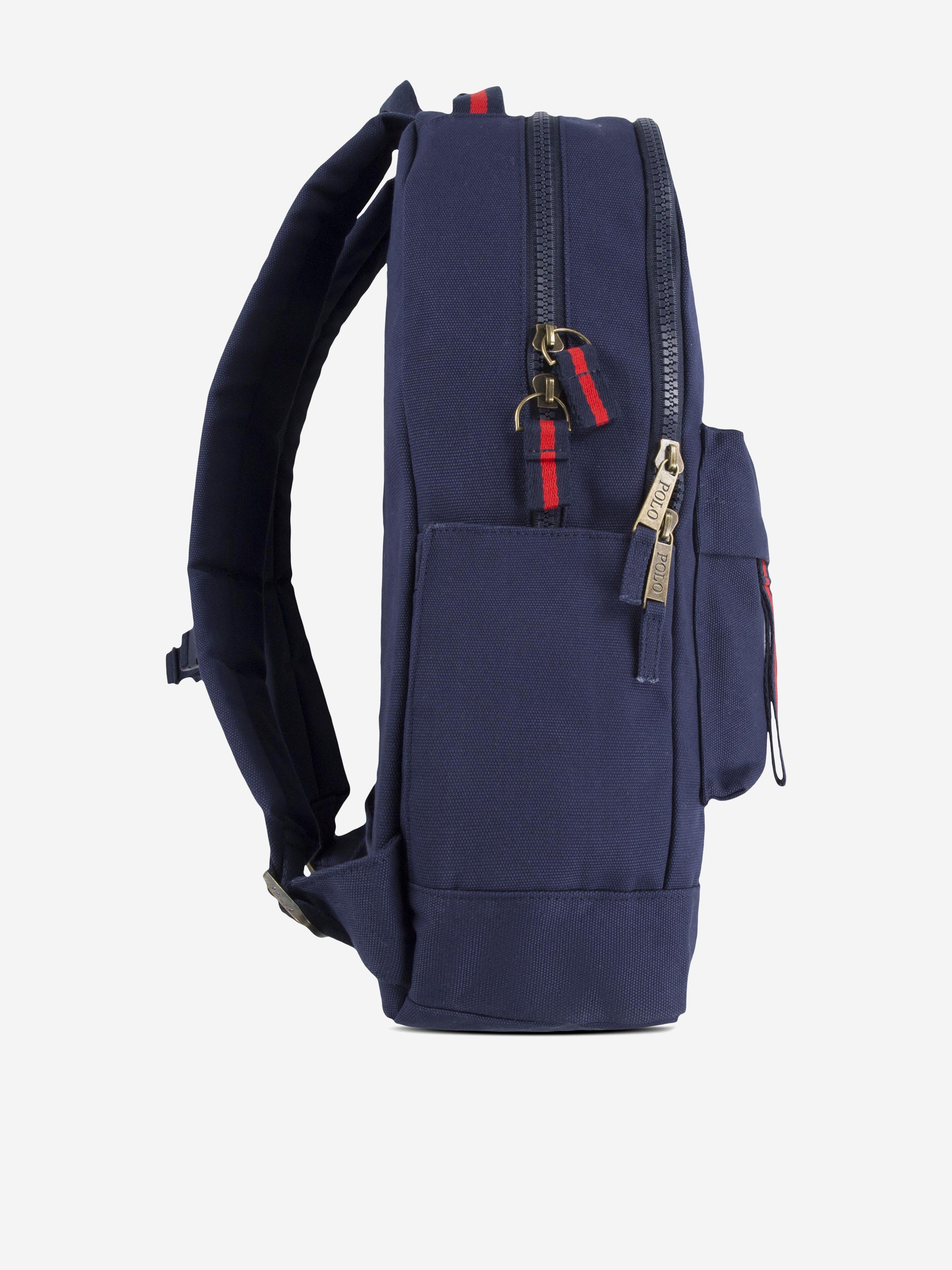 Introducing the Boys Varsity Backpack in Navy (48cm) by Ralph Lauren, an indispensable addition to your boy's accessory collection. Meticulously crafted for year-round utility and substantial style, this backpack epitomises preppy sophistication with its deep navy hue and durable design.