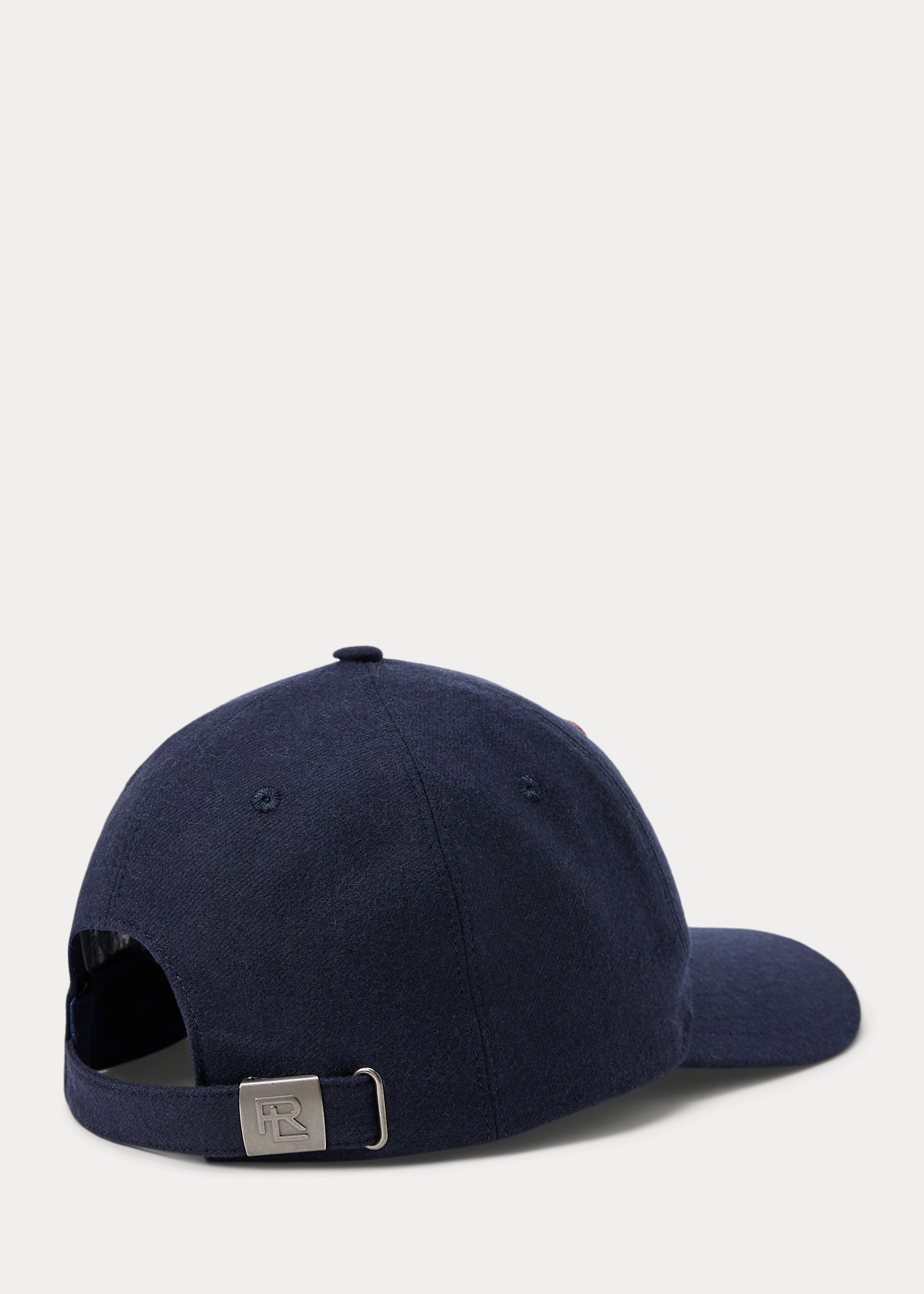 - Buckled strap at the back; stacked RL logo at the buckle.