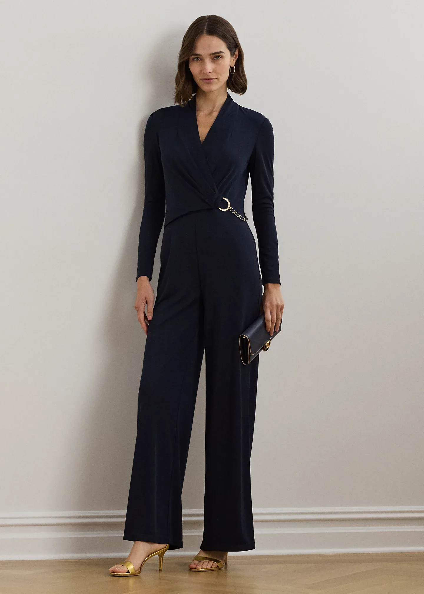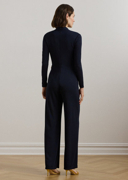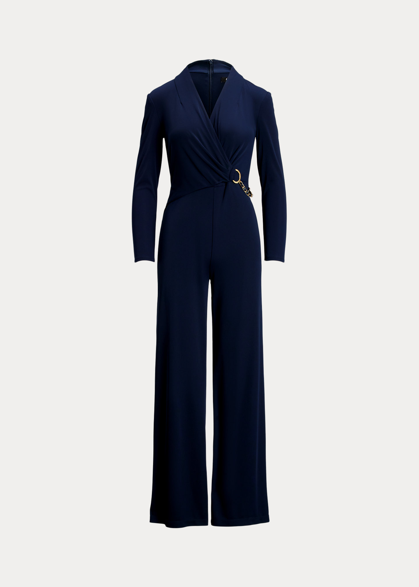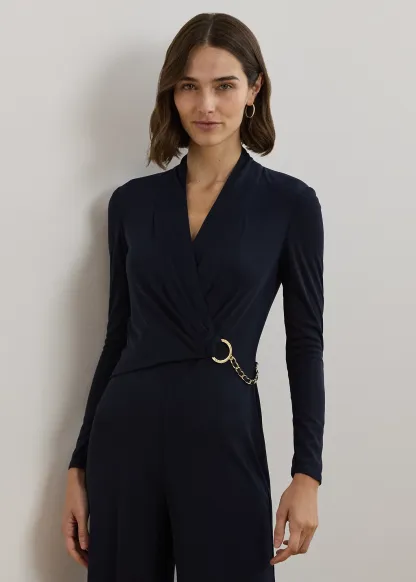 Chain-Trim Jersey Surplice Jumpsuit
