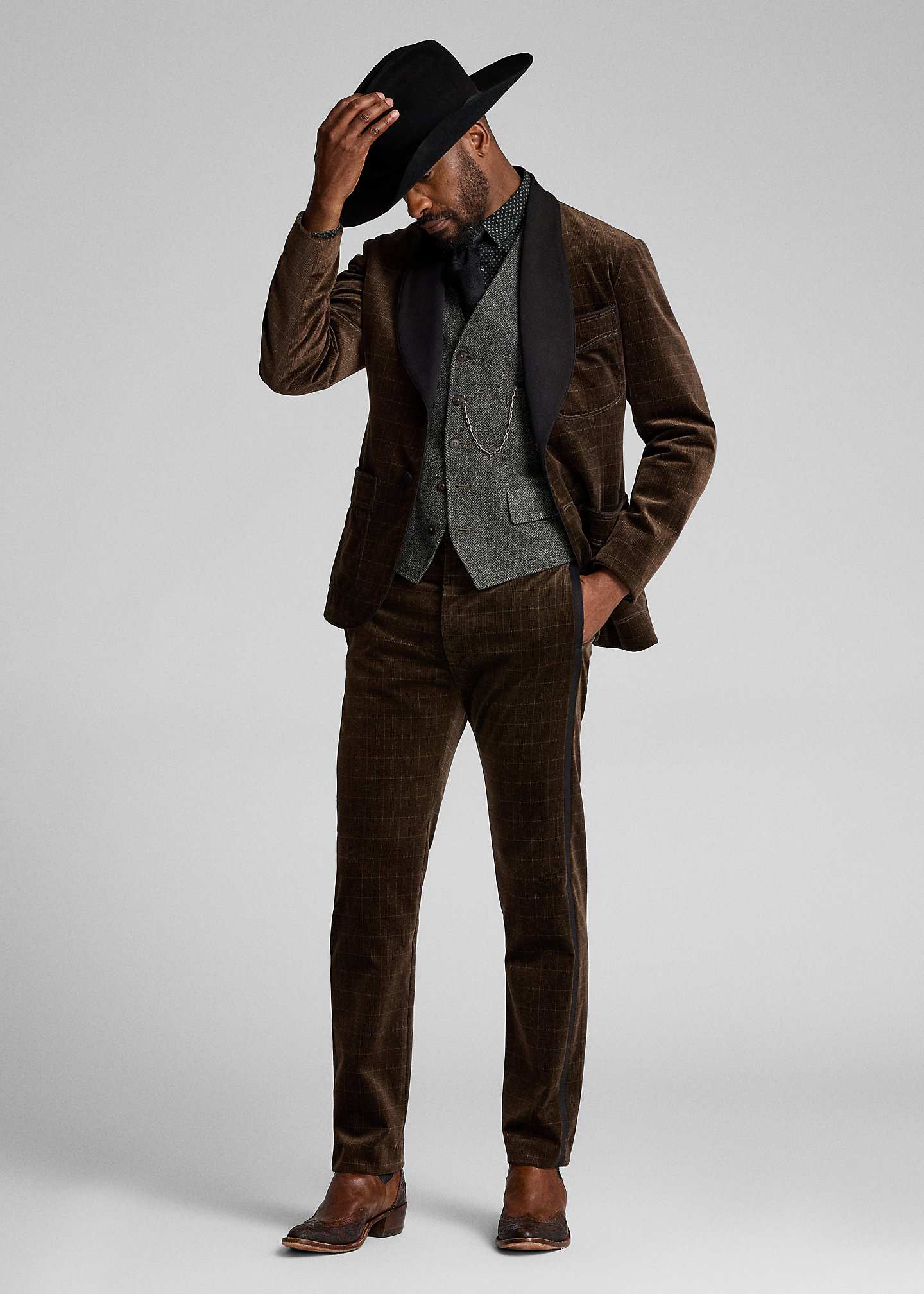 Checked Velvet Officer’s Tuxedo Trouser