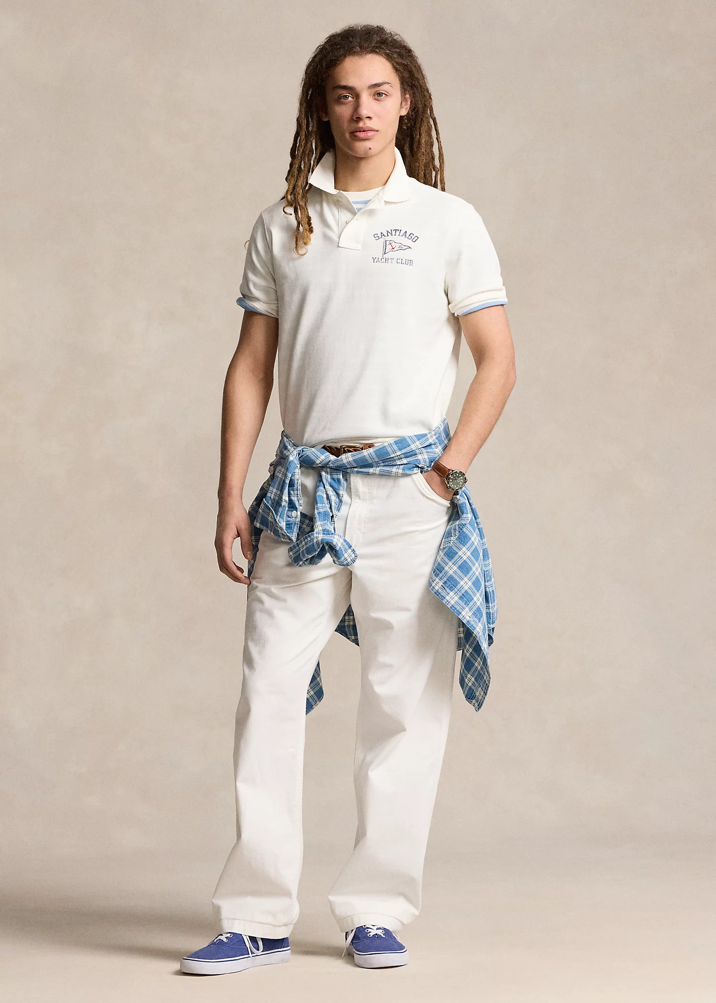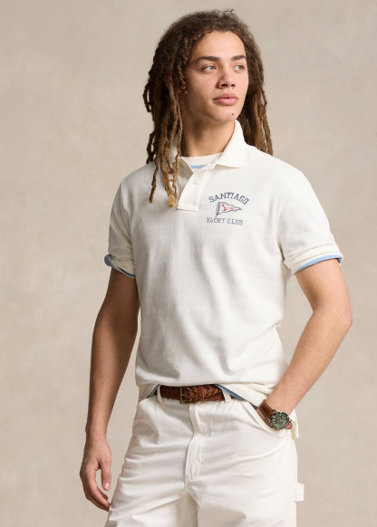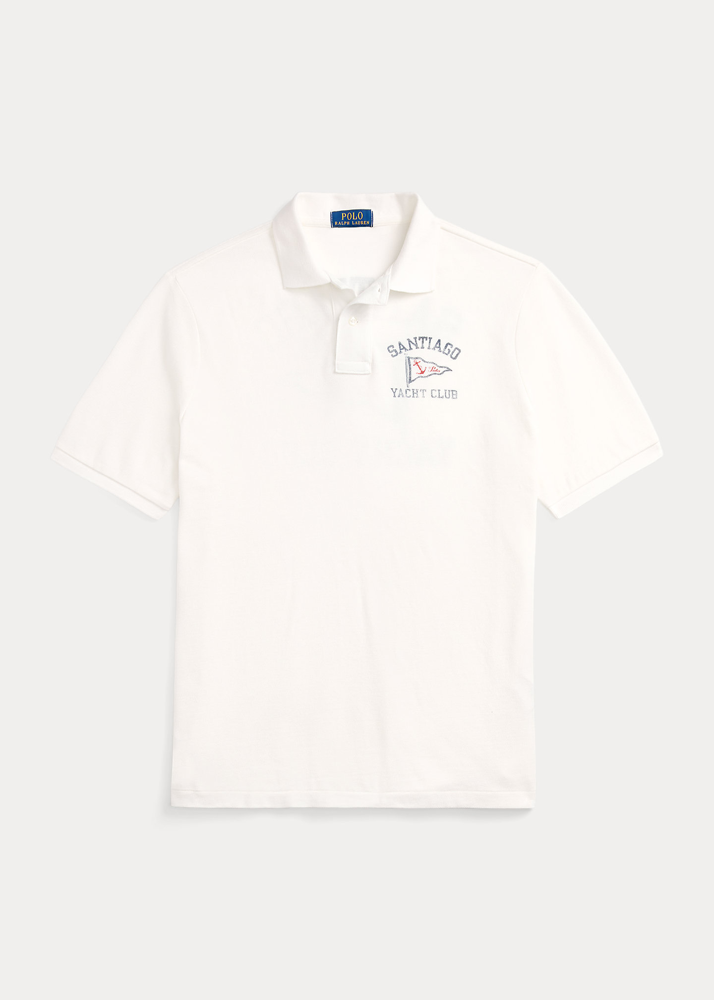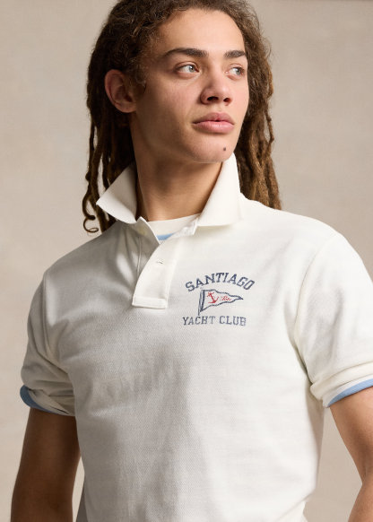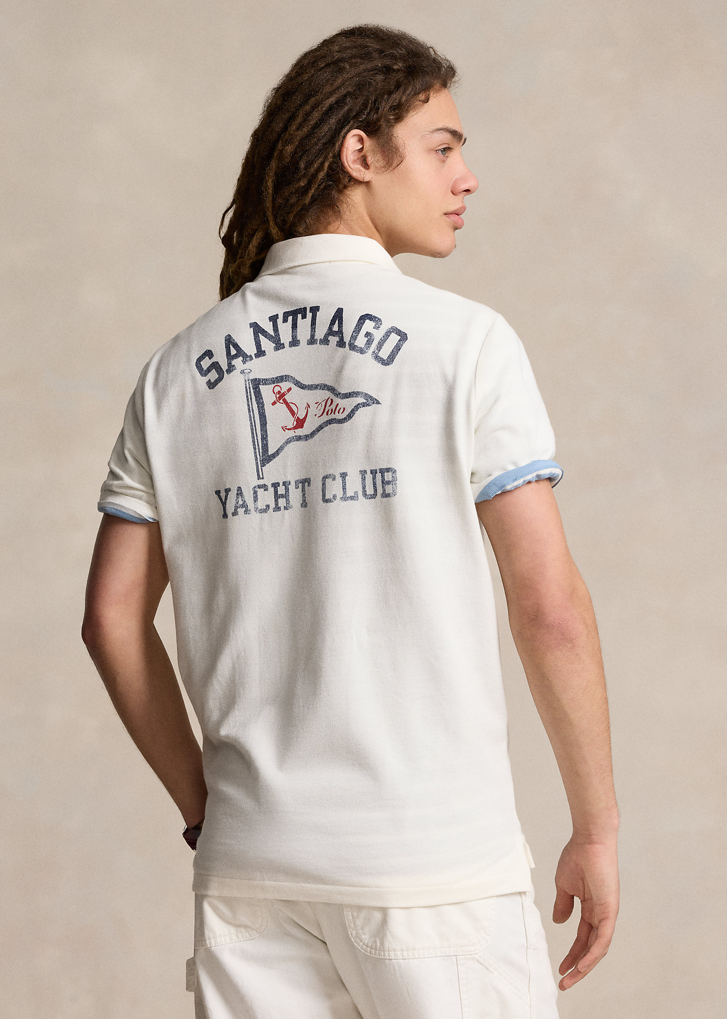 - “Santiago Yacht Club” and a nautical “Polo” flag crackle-printed at the left chest and center back.
