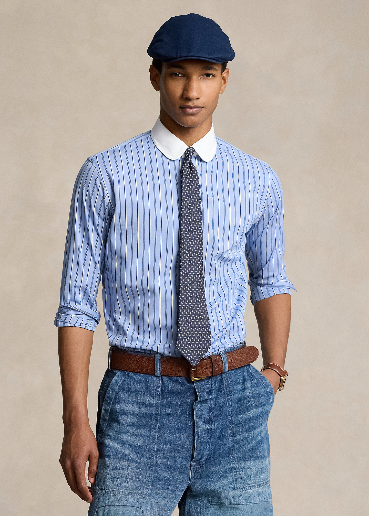 - Long sleeves with buttoned barrel cuffs.