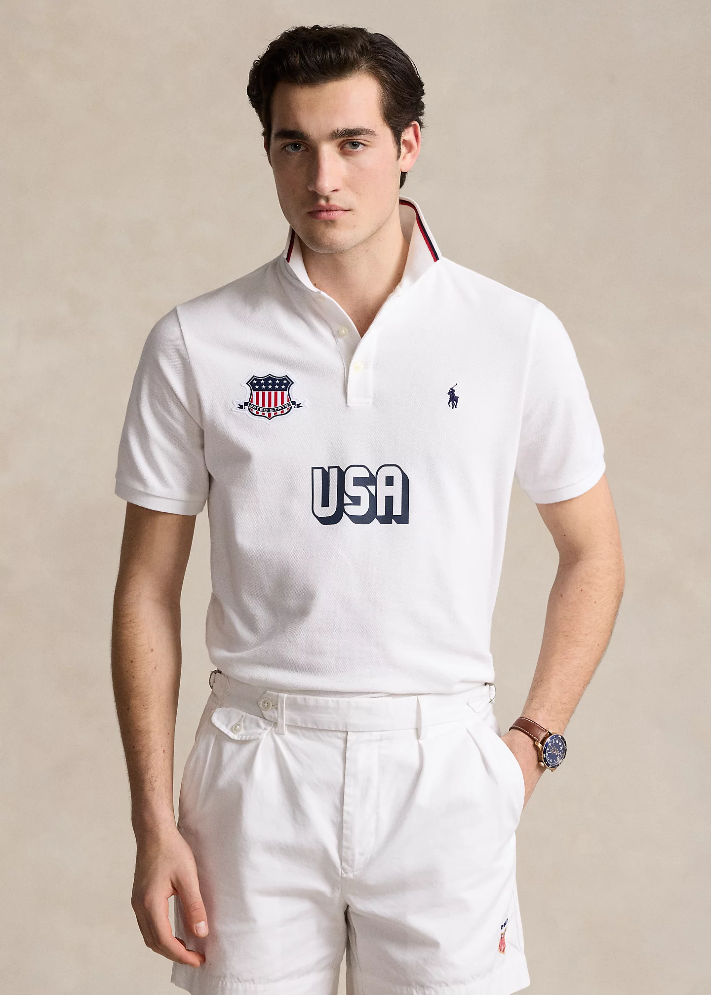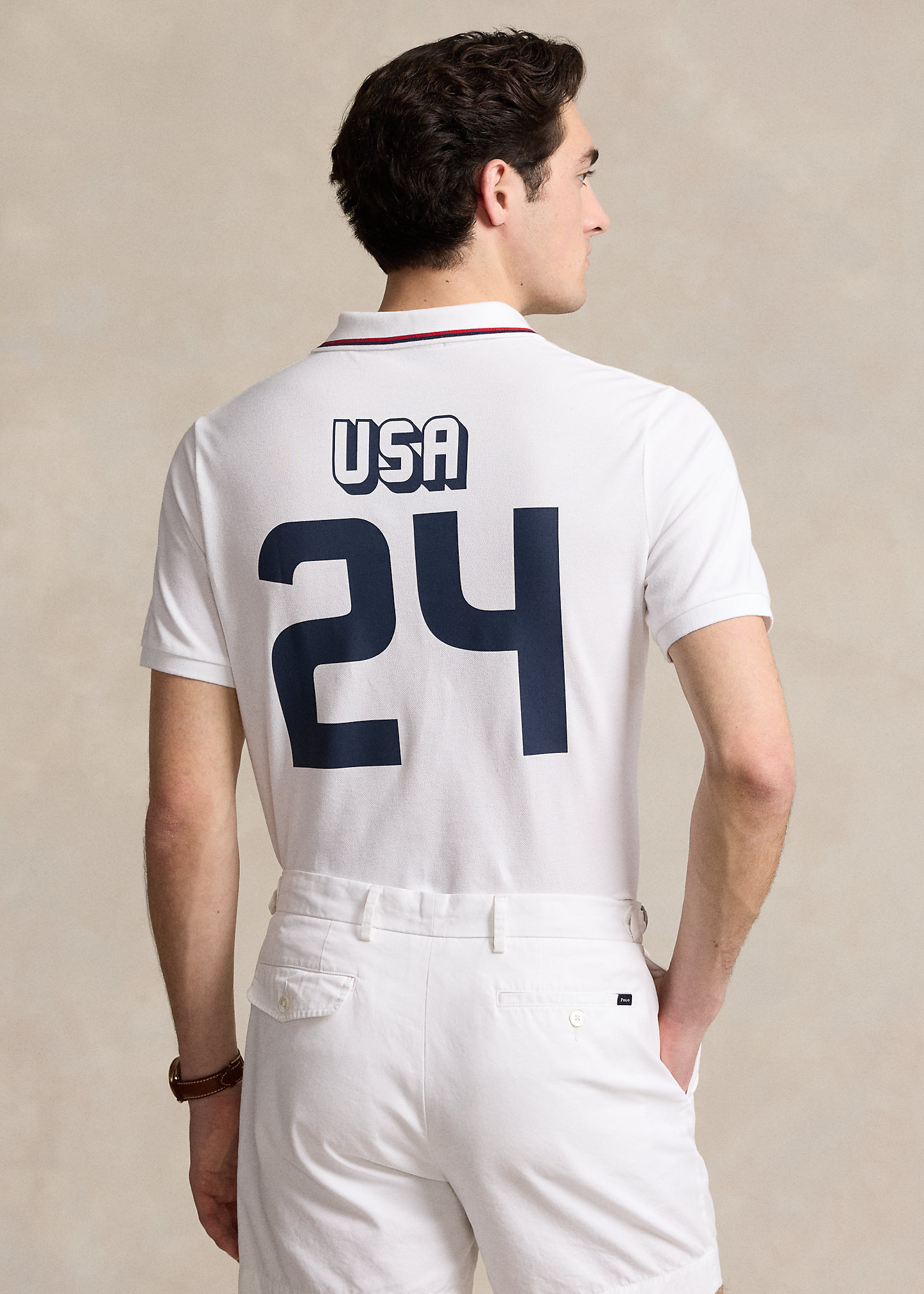 - “United States” flag patch at the right chest. “USA” printed at the center front and upper back. “24” printed at the center-back. Even vented hem.