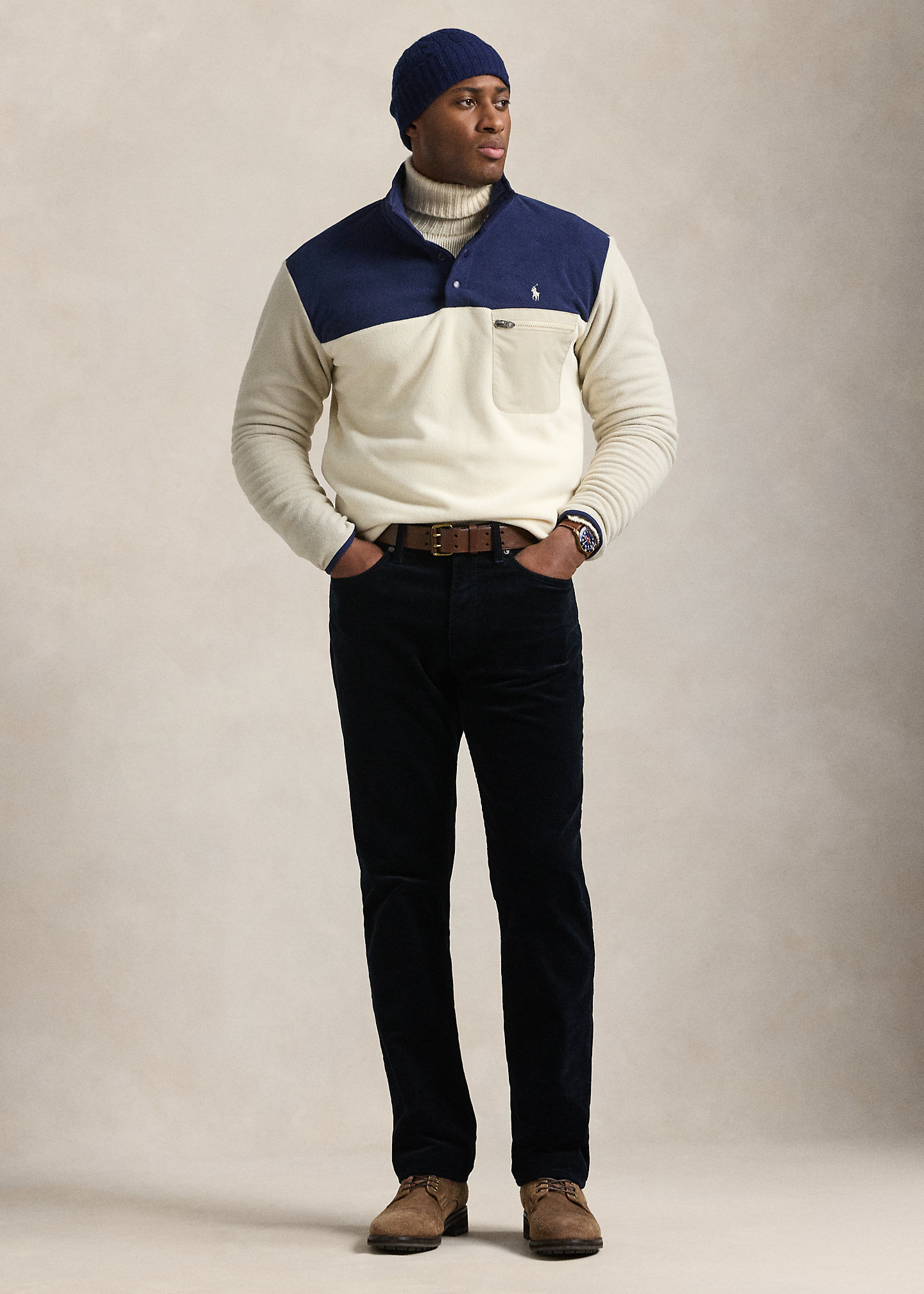 Color-Blocked Fleece Pullover