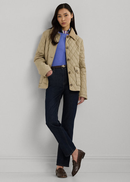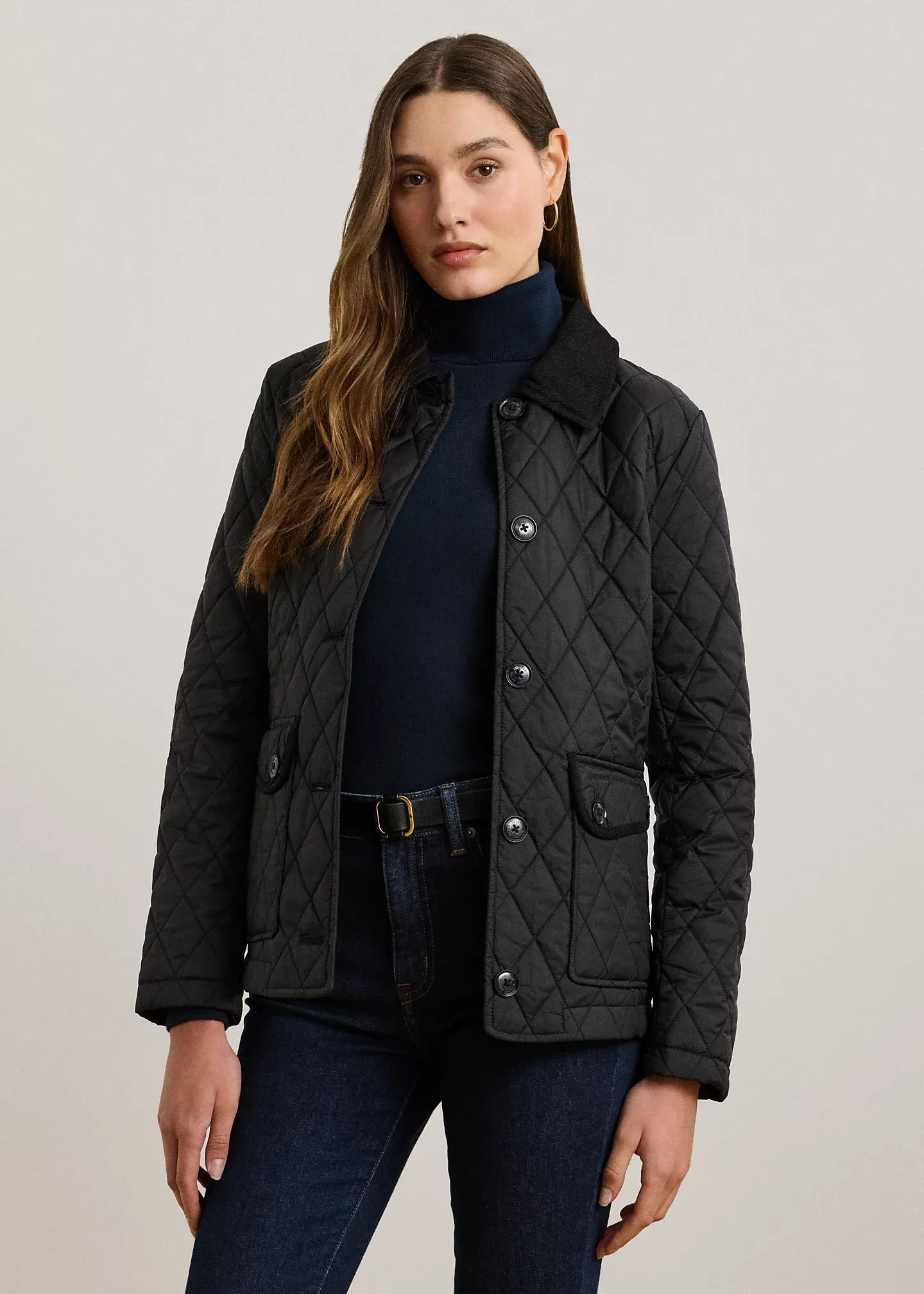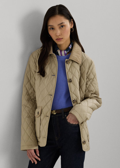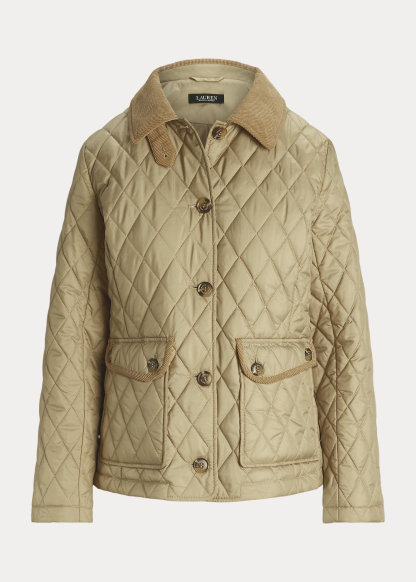 Corduroy-Trim Diamond-Quilted Jacket