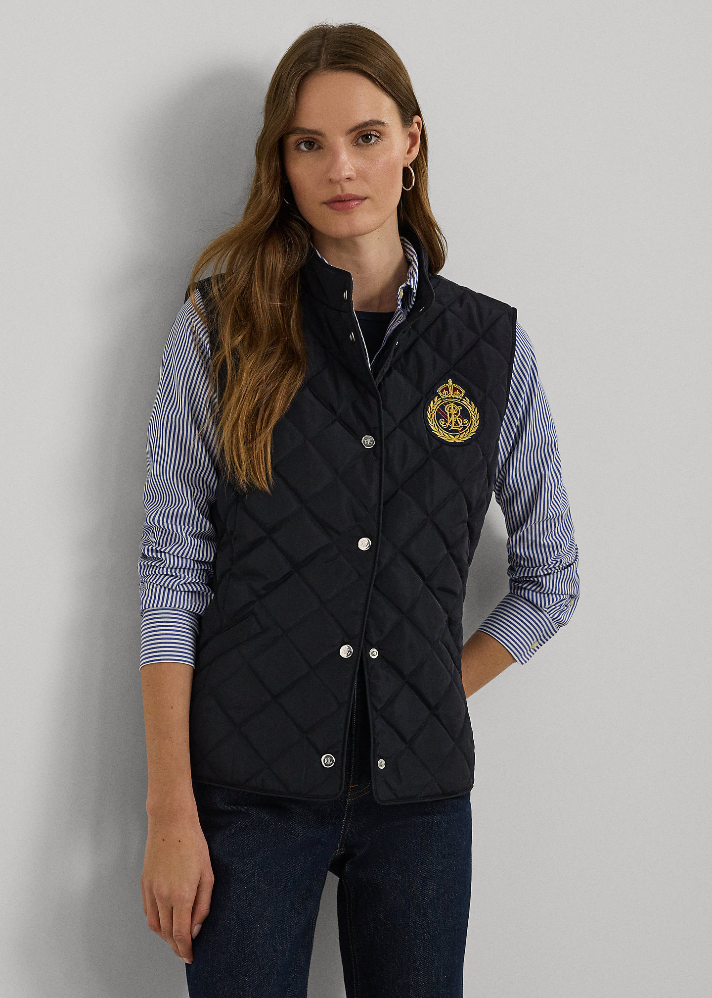 - Signature embroidered crest patch at the left chest. “LRL”-debossed faux-leather tab at the center back of the neck. Fully lined and lightly filled.