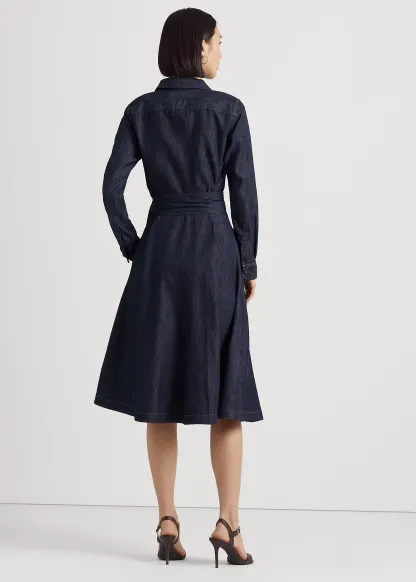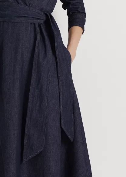 Denim Long-Sleeve Midi Dress