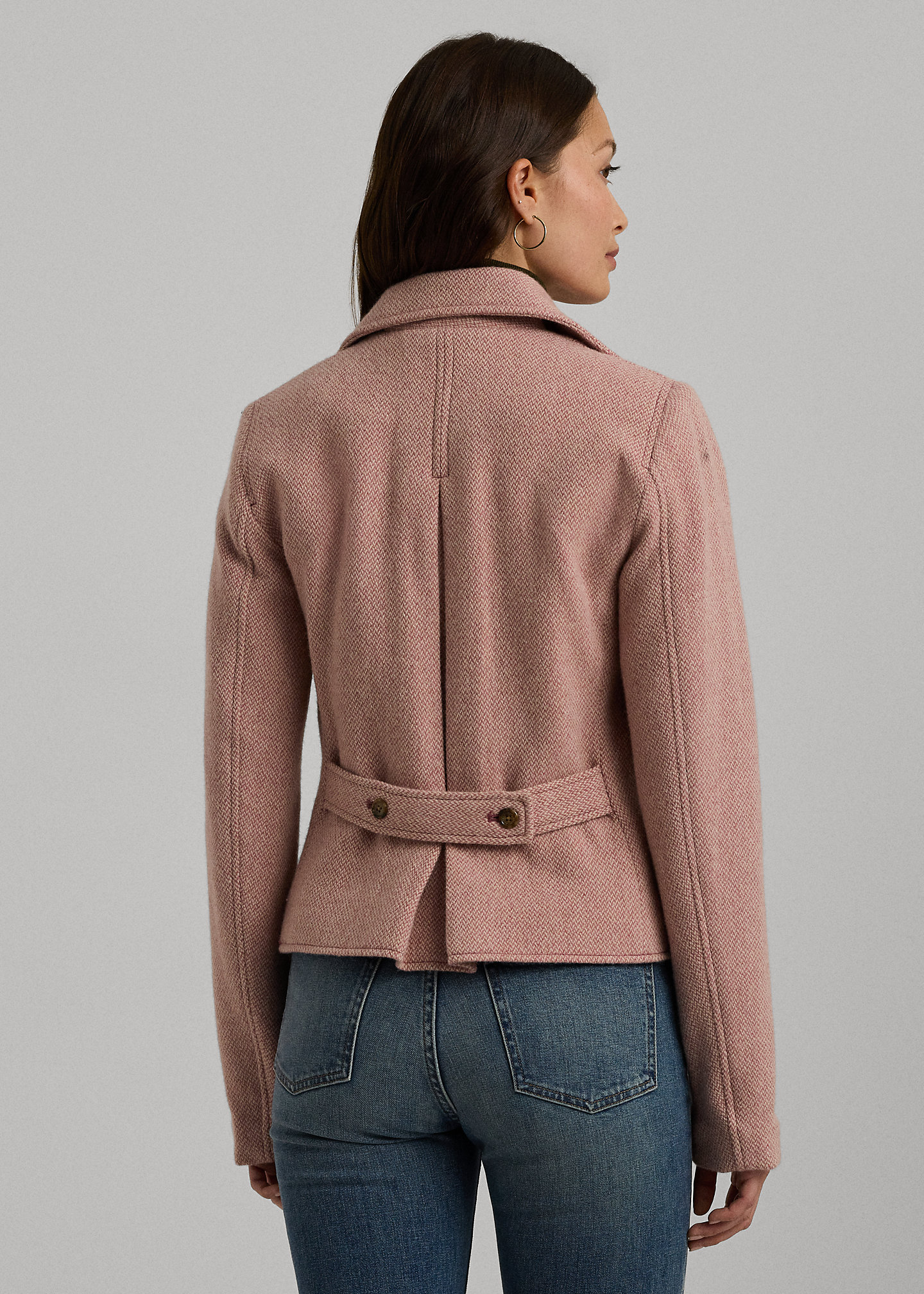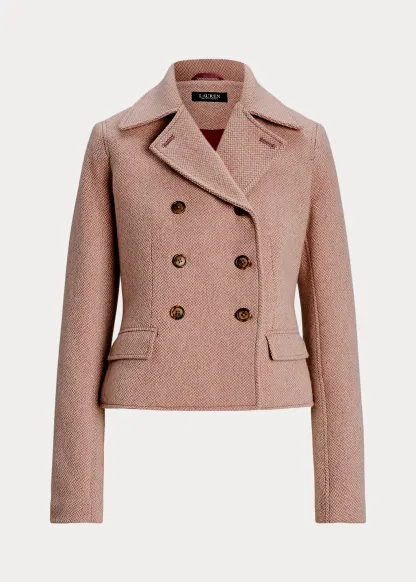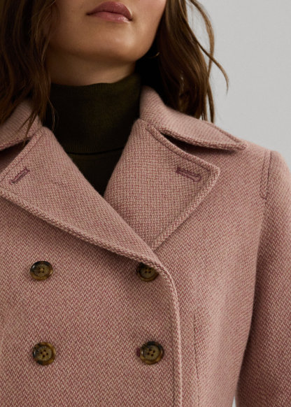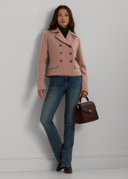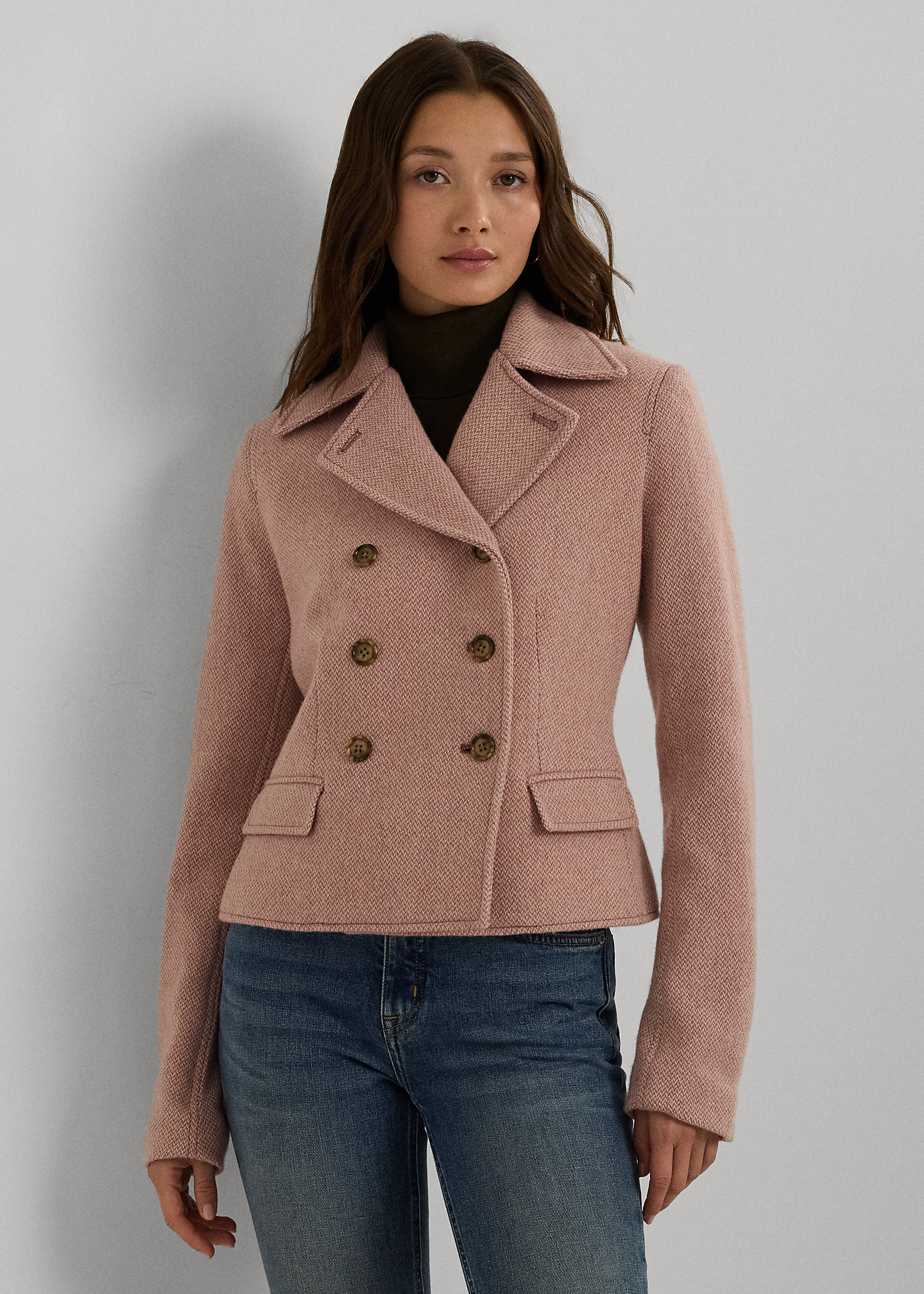 - Notch lapels. Double-breasted silhouette. Interior stay button. “Lauren Ralph Lauren”–engraved horn-effect buttons.