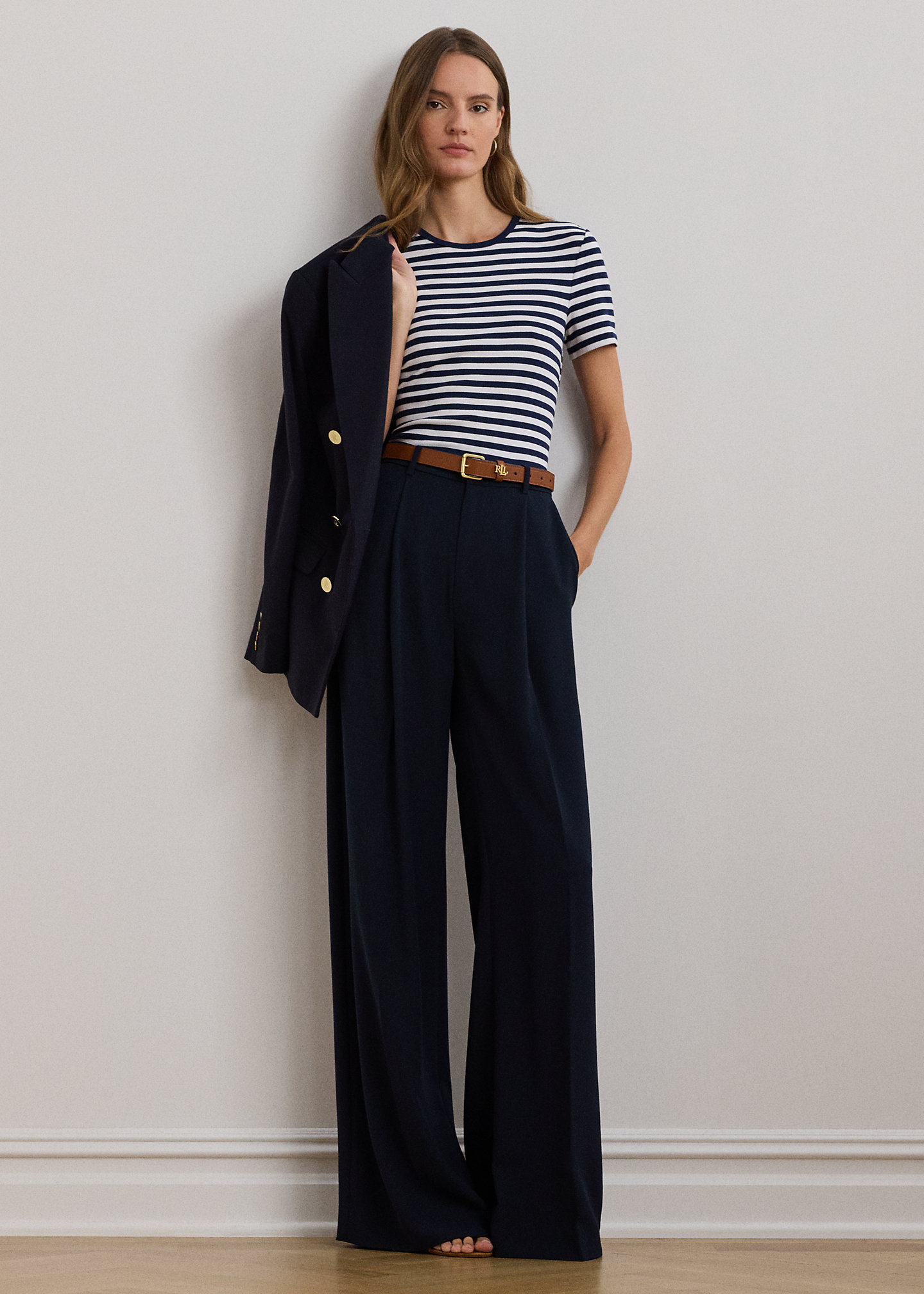 - High rise. Wide-leg silhouette. Intended to hit below the ankle.