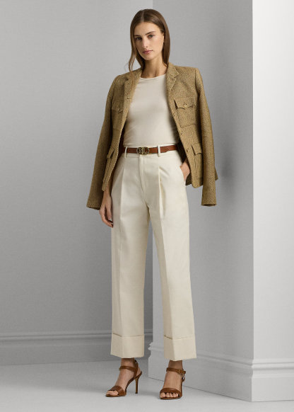 - High rise. Wide-leg silhouette. Intended to hit at the ankle.