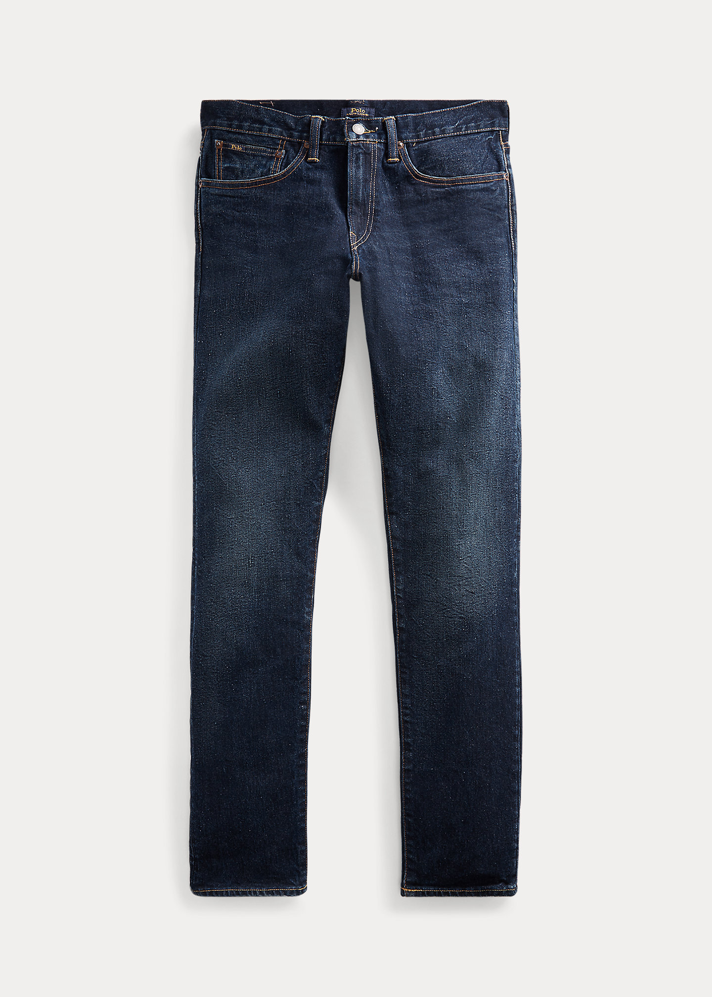 - Five-pocket styling with signature metal rivets. “Polo” label at the coin pocket.