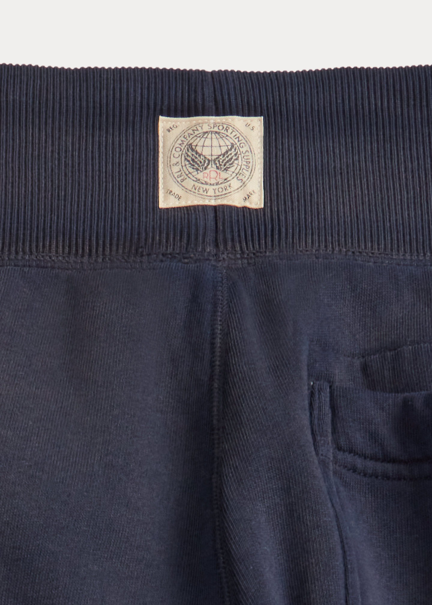 - Ribbed drawstring waistband. “RRL & Company Sporting Supplies New York” label at the back waist.