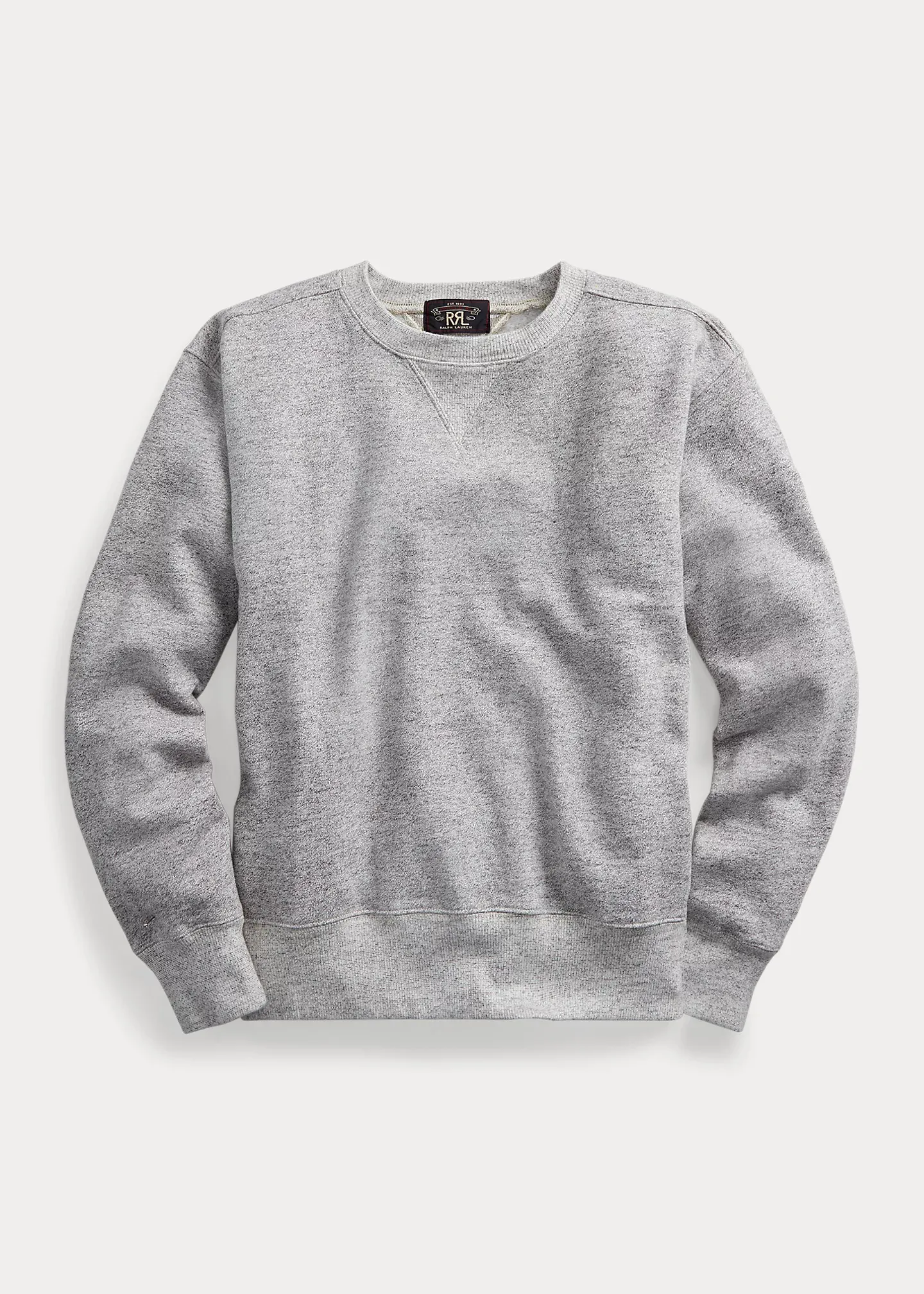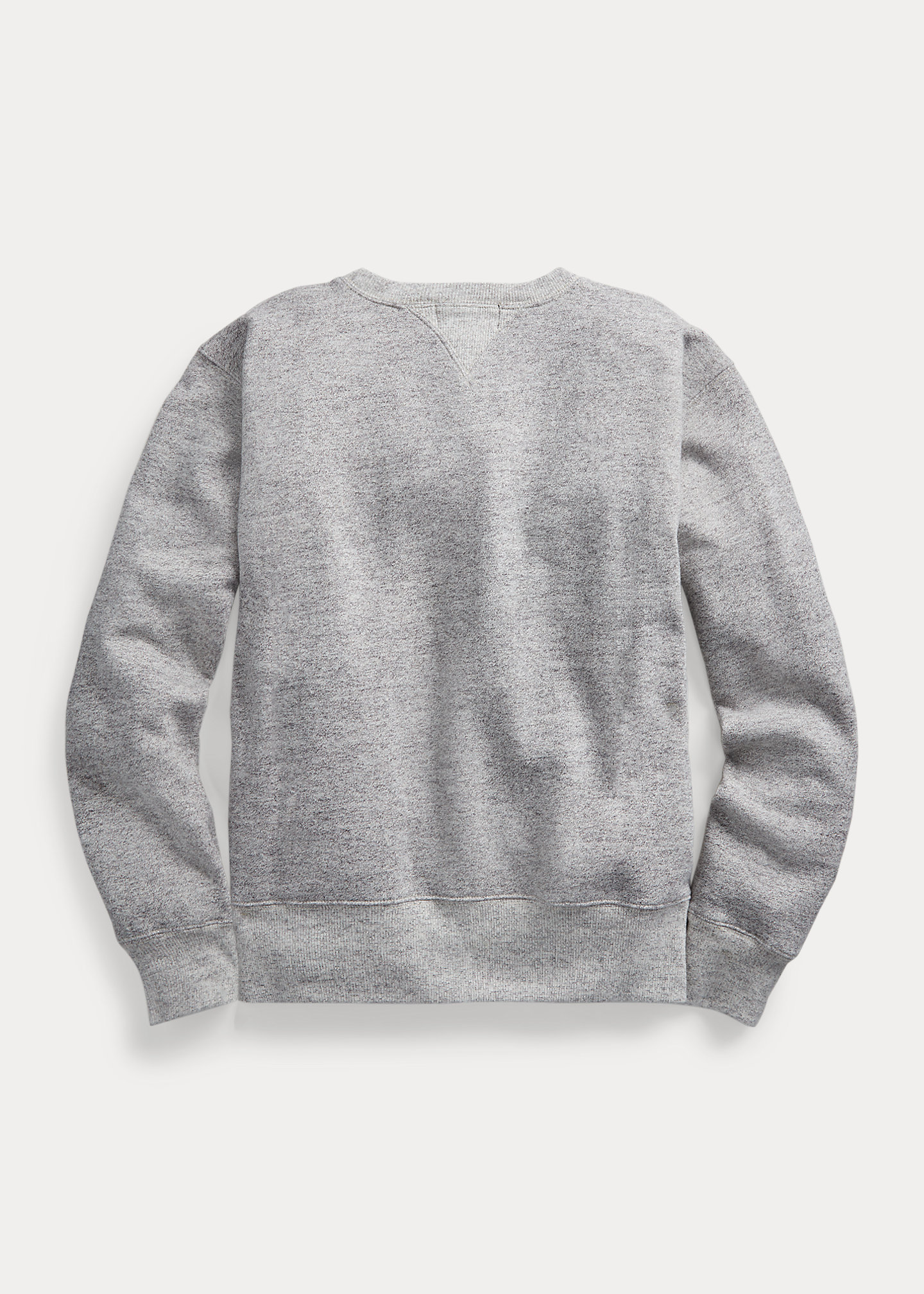 - Crewneck with a ribbed double V-inset.