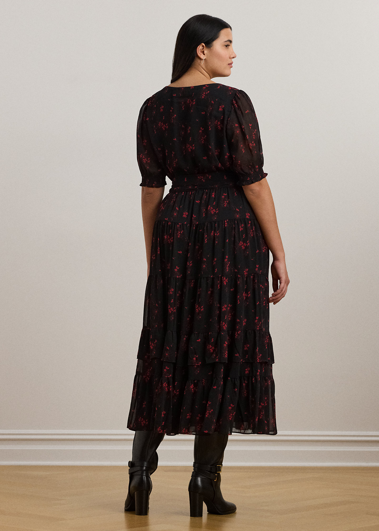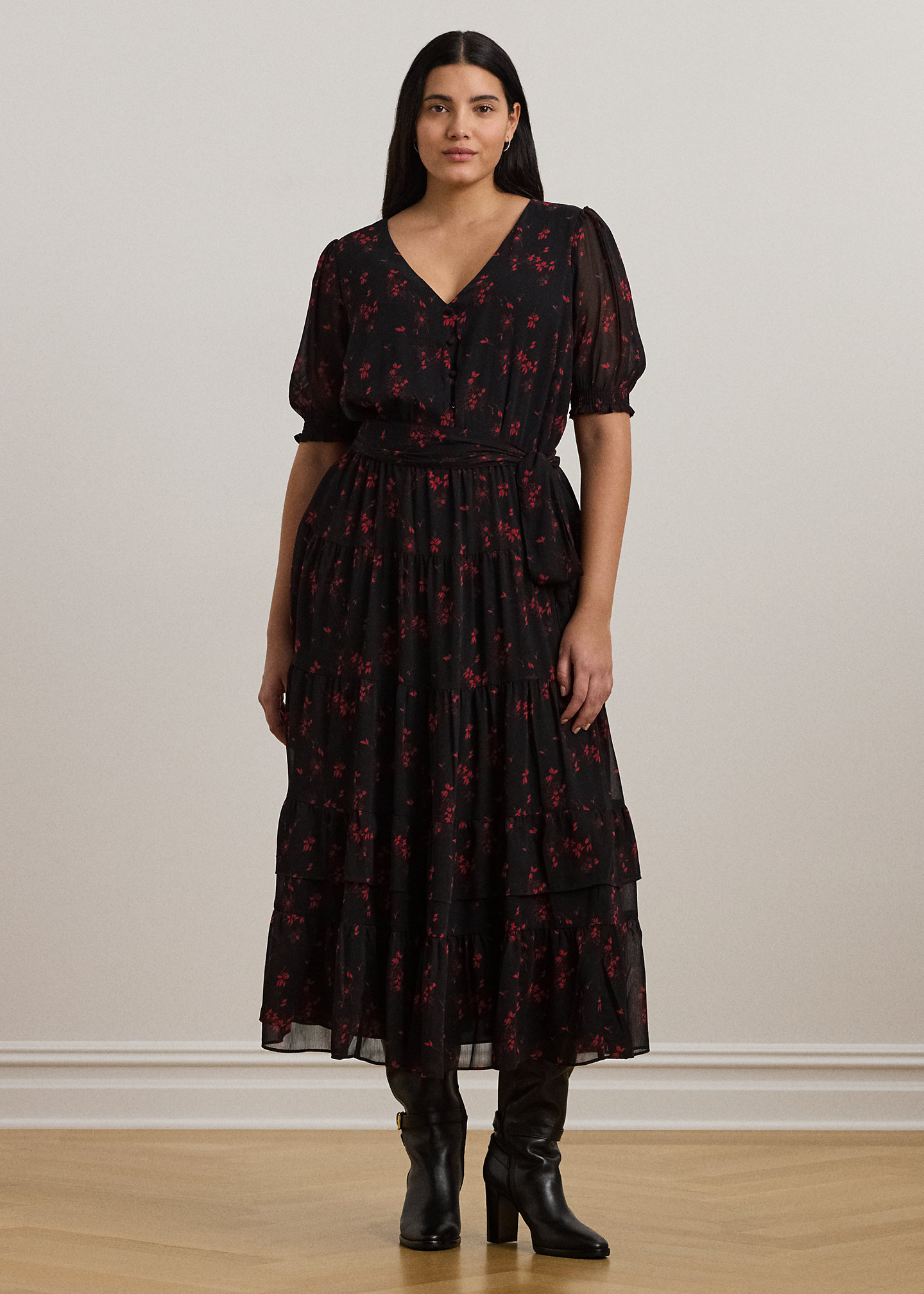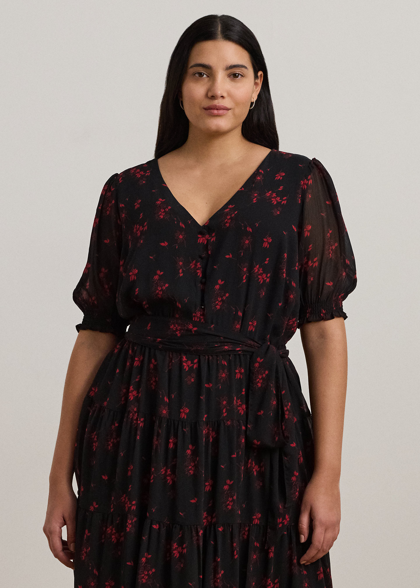 - Threaded belt loops. Comes with a removable self-belt. Elasticized waist. Tiered skirt. Shirring into the waist and tier seams. Fully lined except for the sleeves.