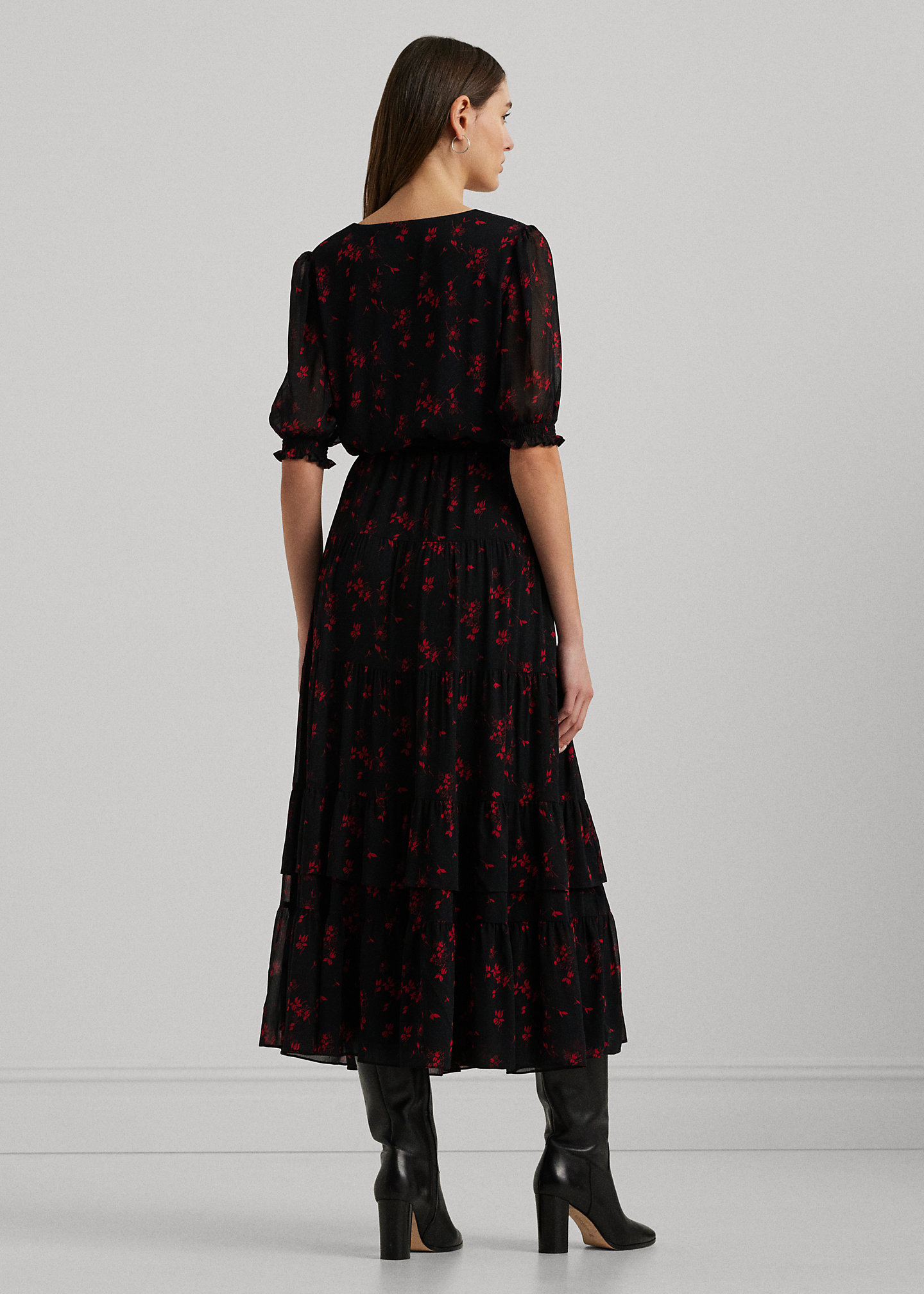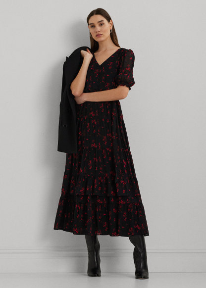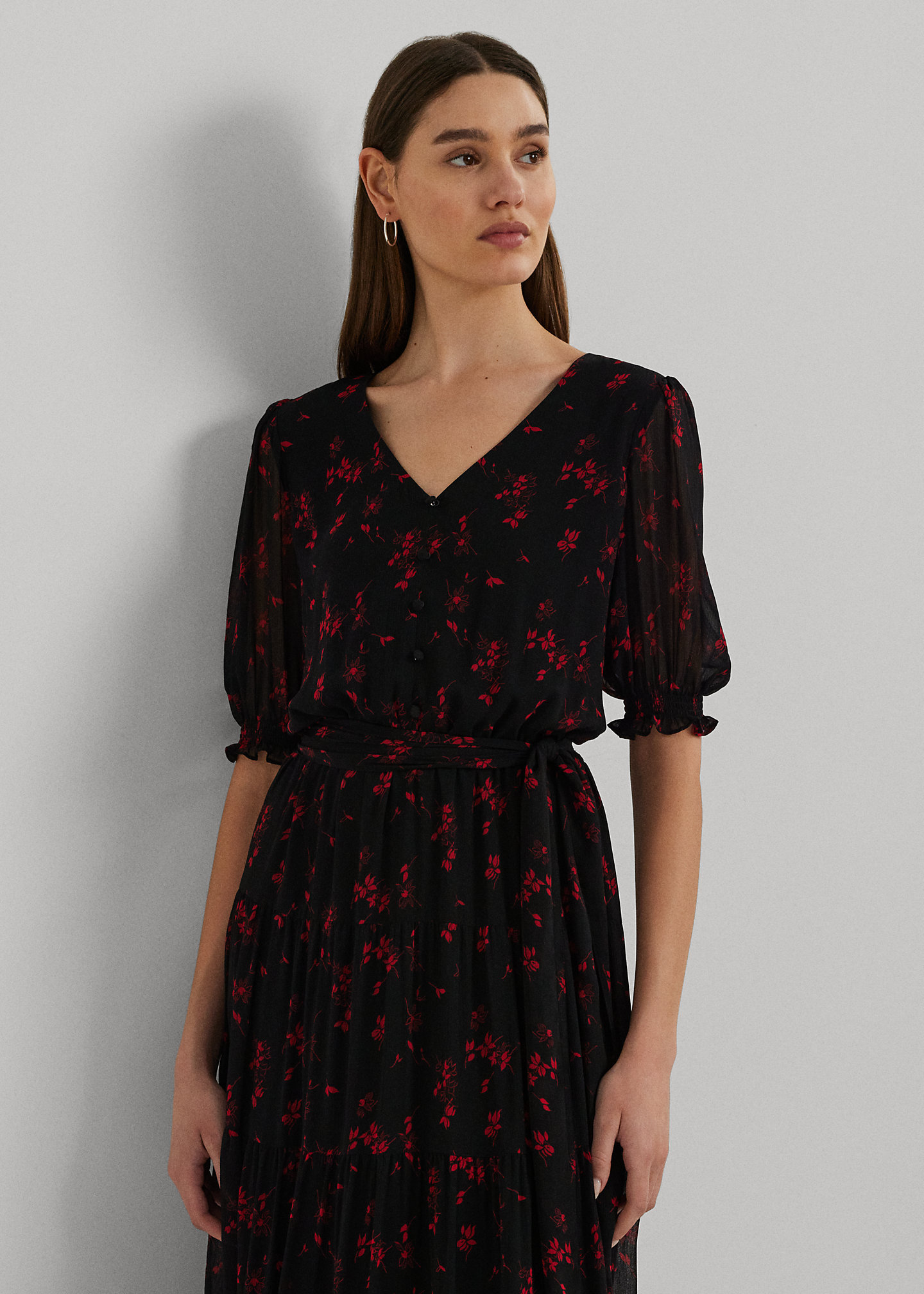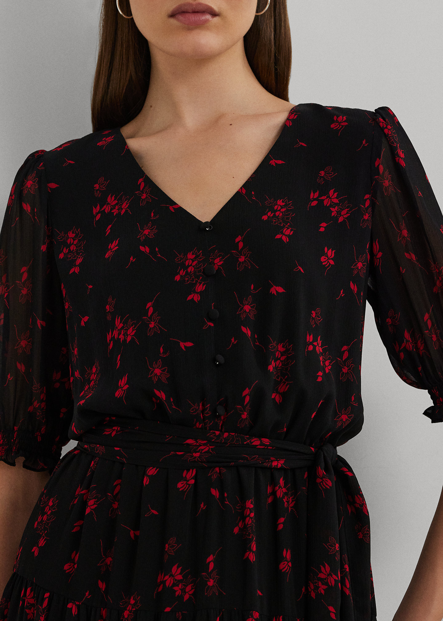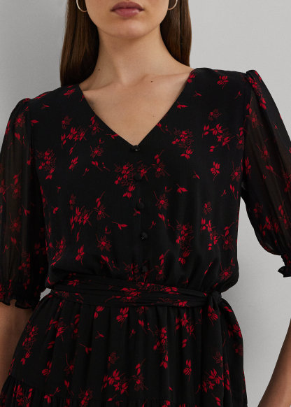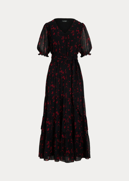 Floral Belted Crinkle Georgette Dress