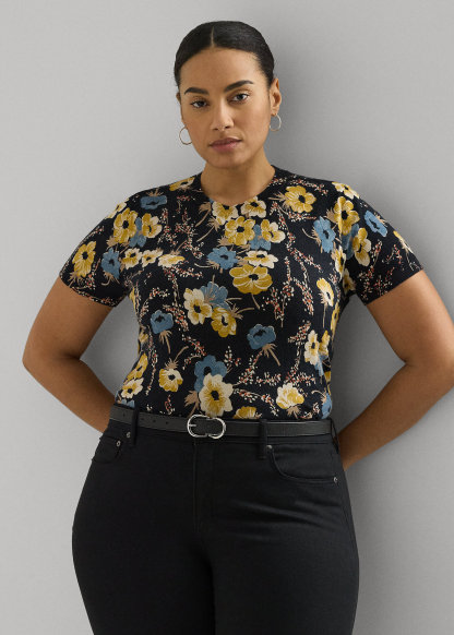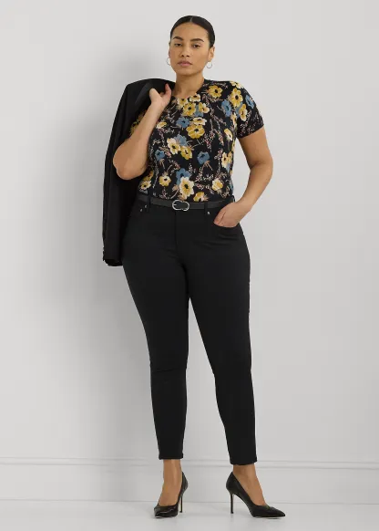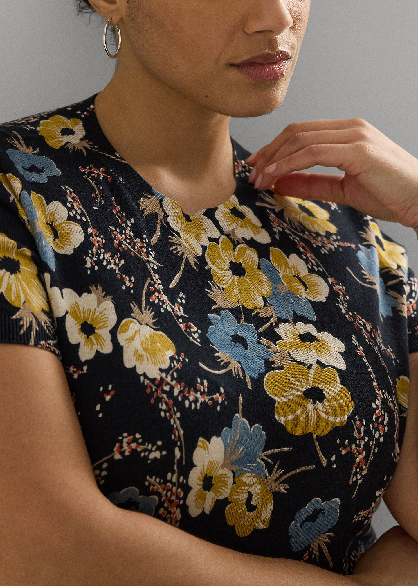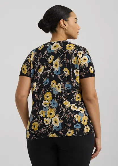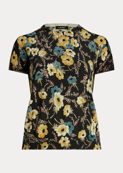 Floral Cotton-Blend Short-Sleeve Sweater