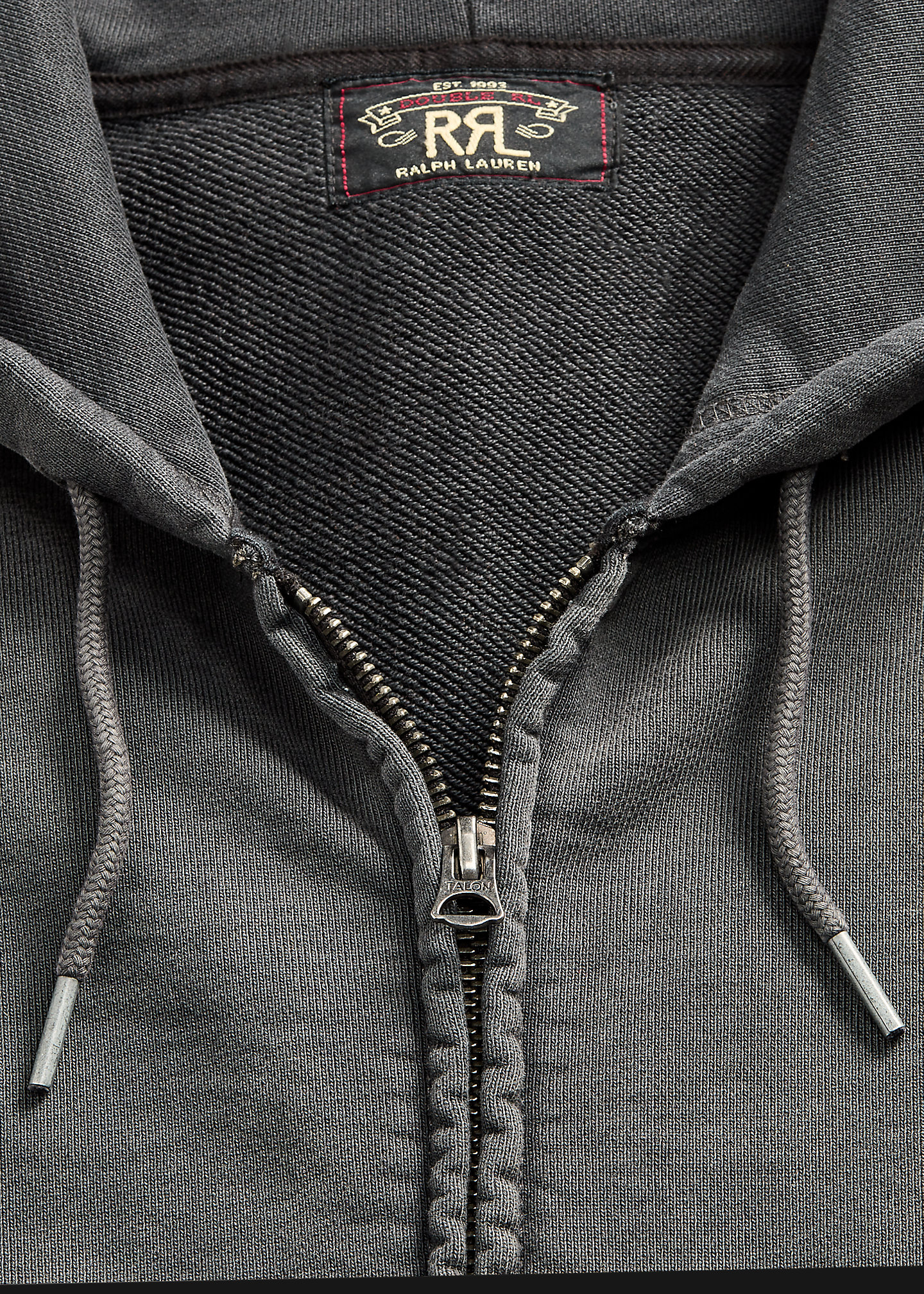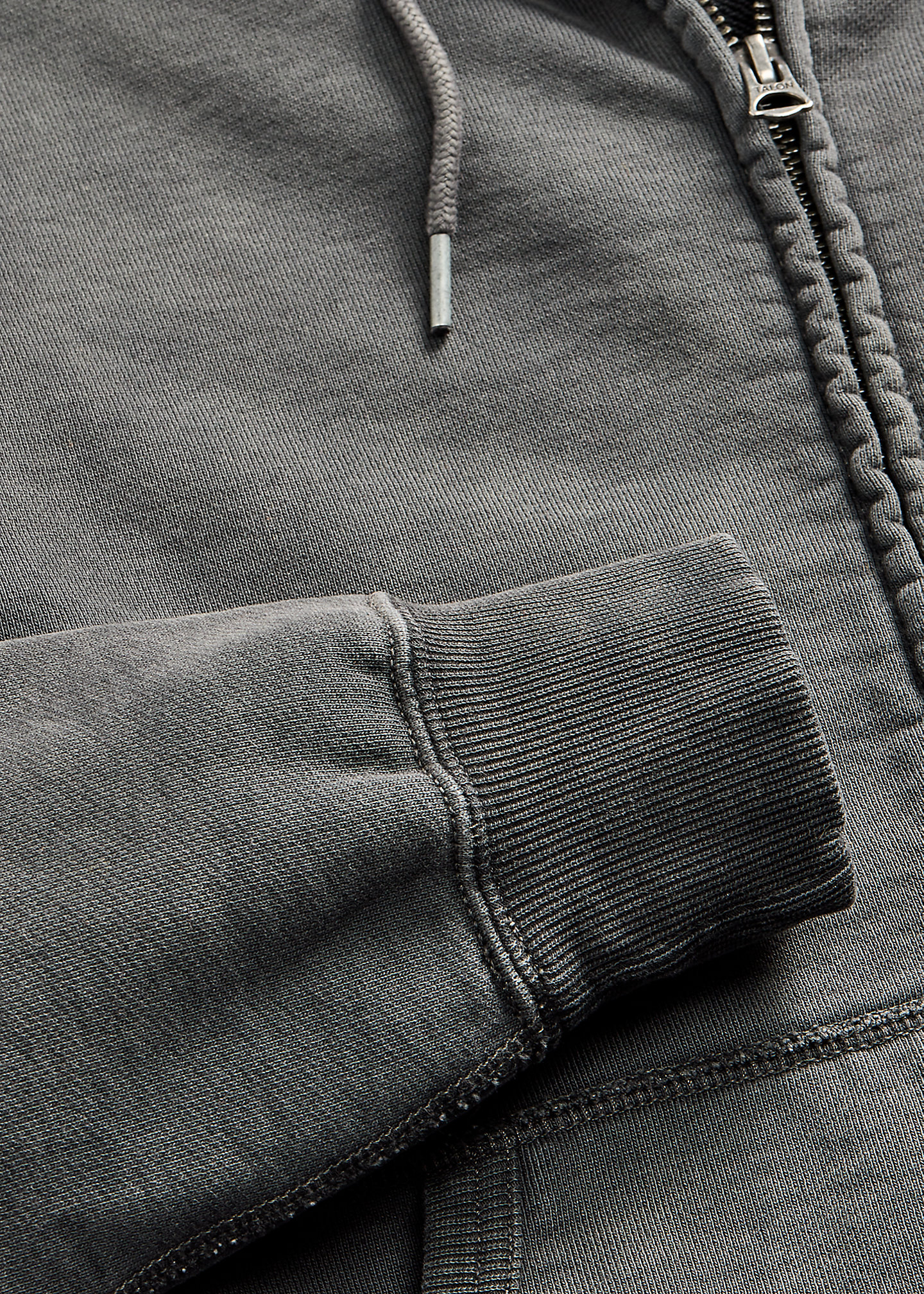 - Drawstring hood. Full-zip front.