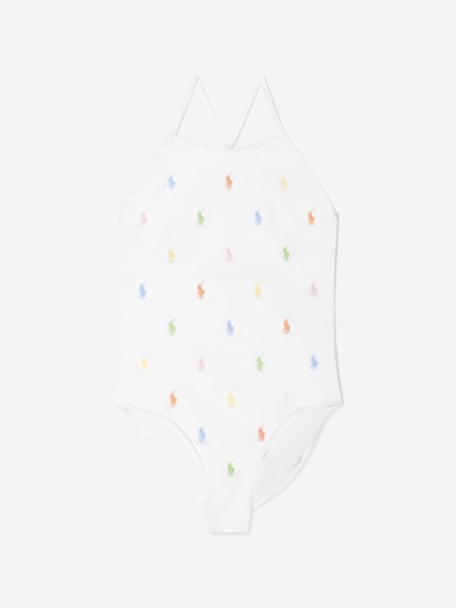 Rattglph Lauren Girls Schiffli Swimsuit in White