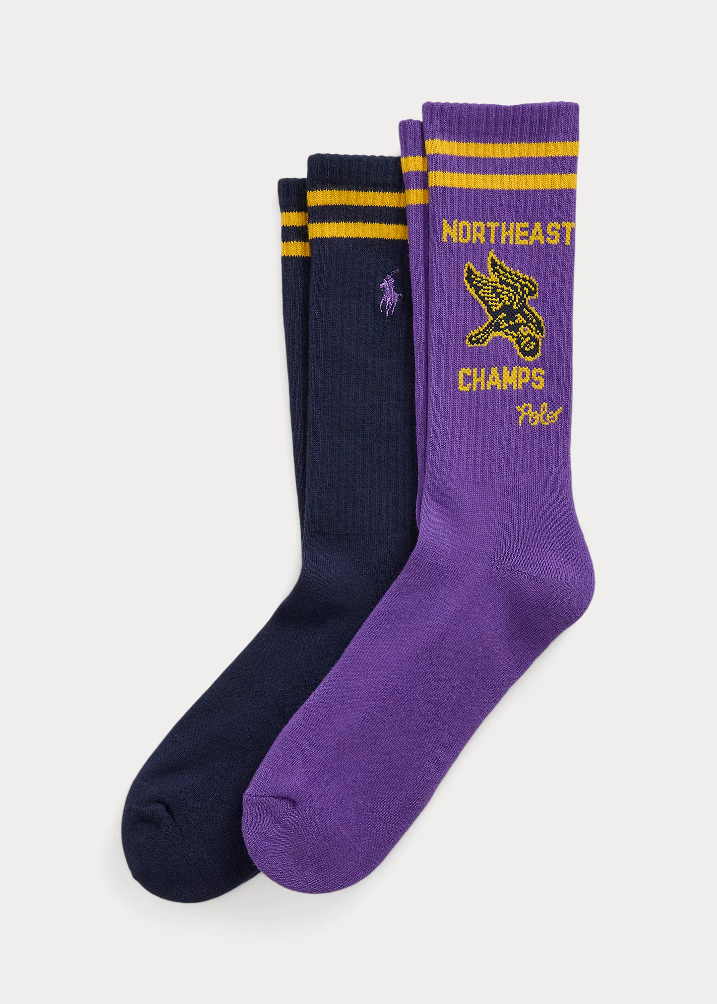 - “Northeast Champs Polo” graphic knit at the outer side of each sock in one pair. Signature embroidered Pony at the outer side of each sock in one pair.