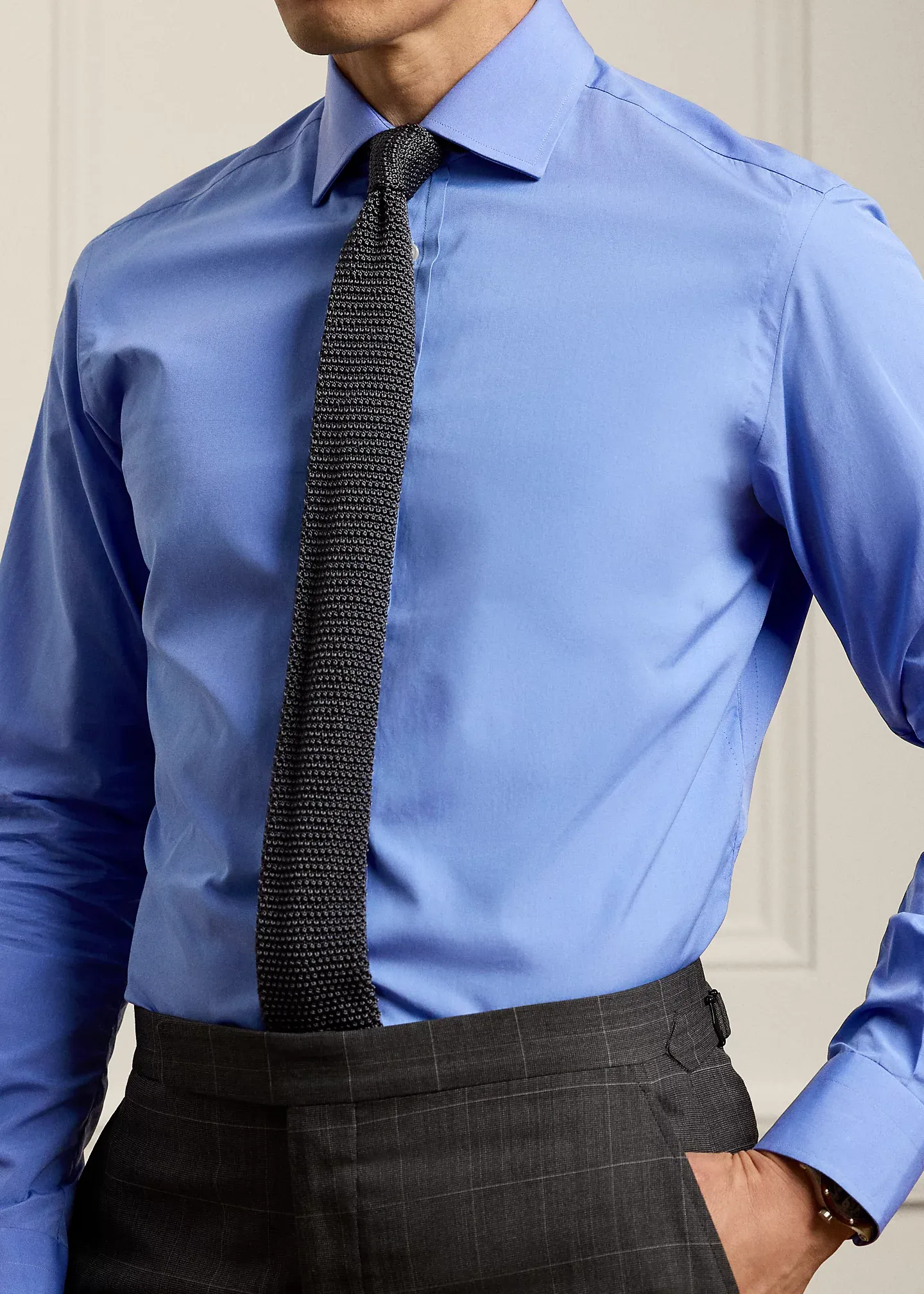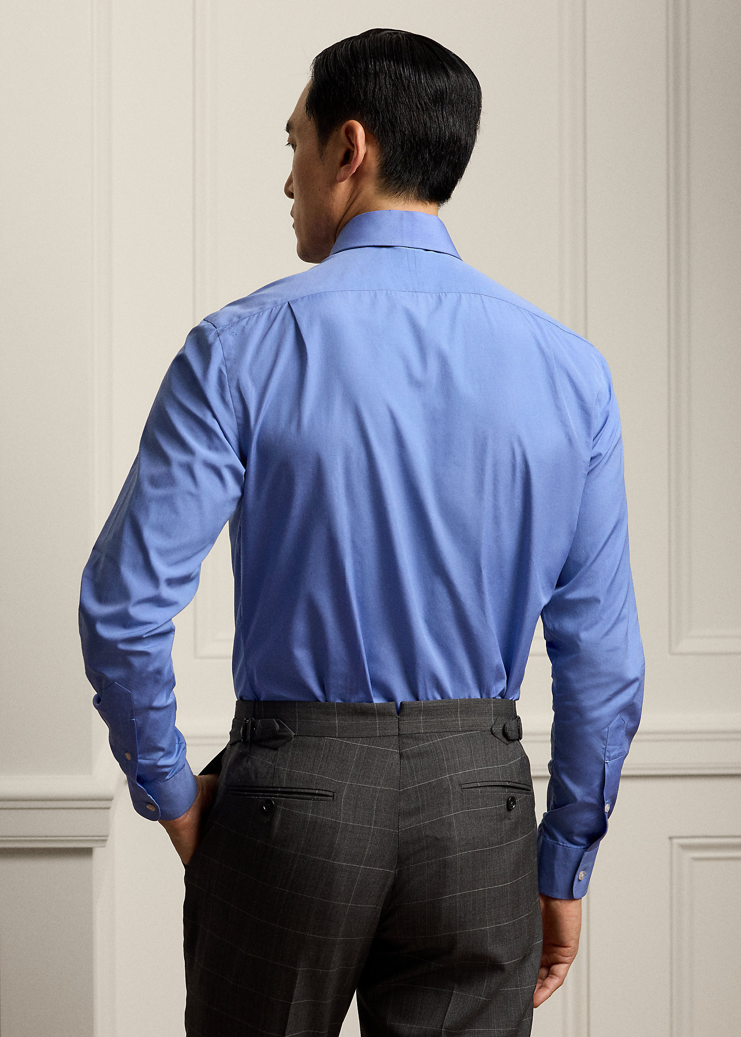 - Split pleated back yoke ensures smooth, contoured shoulders.