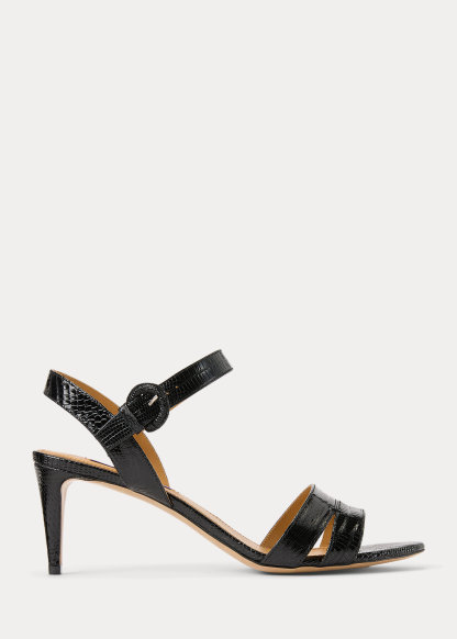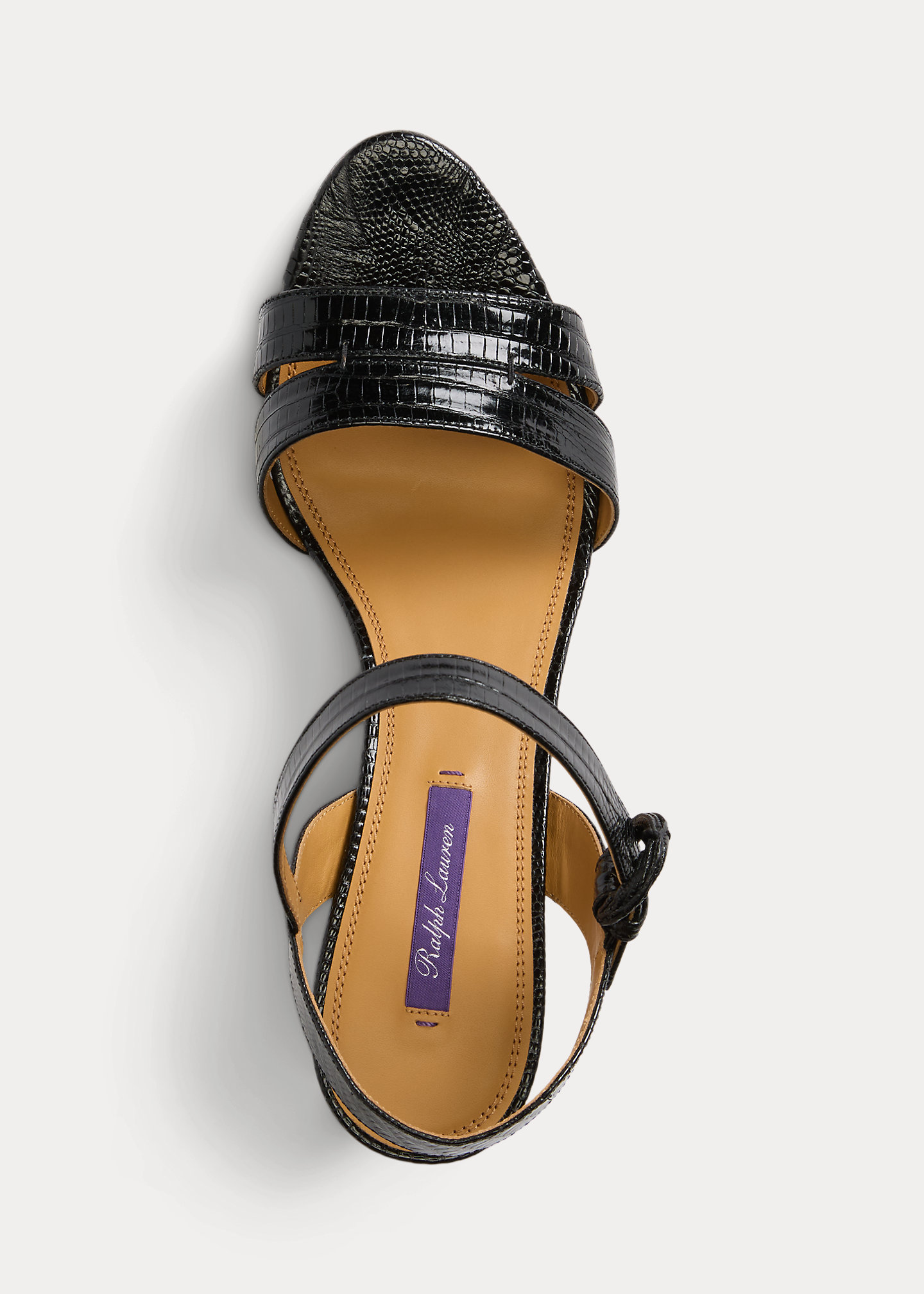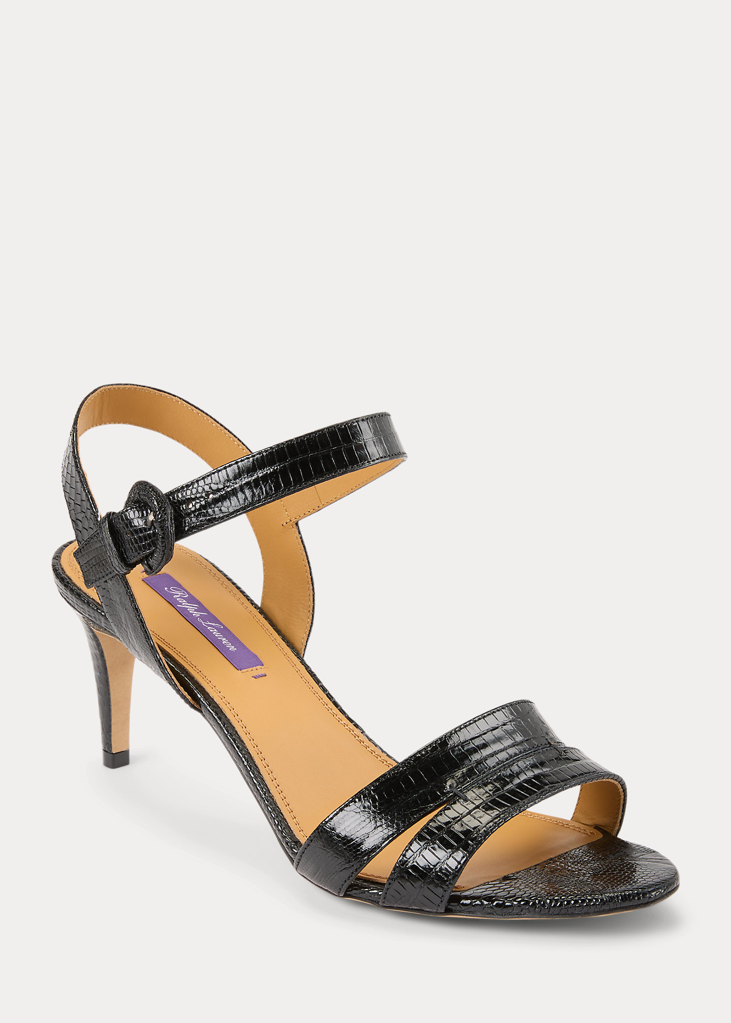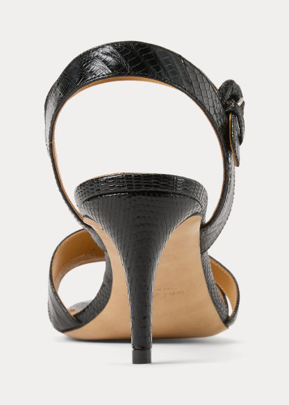 - Buckled ankle strap. Antiqued silver-tone brass buckle.