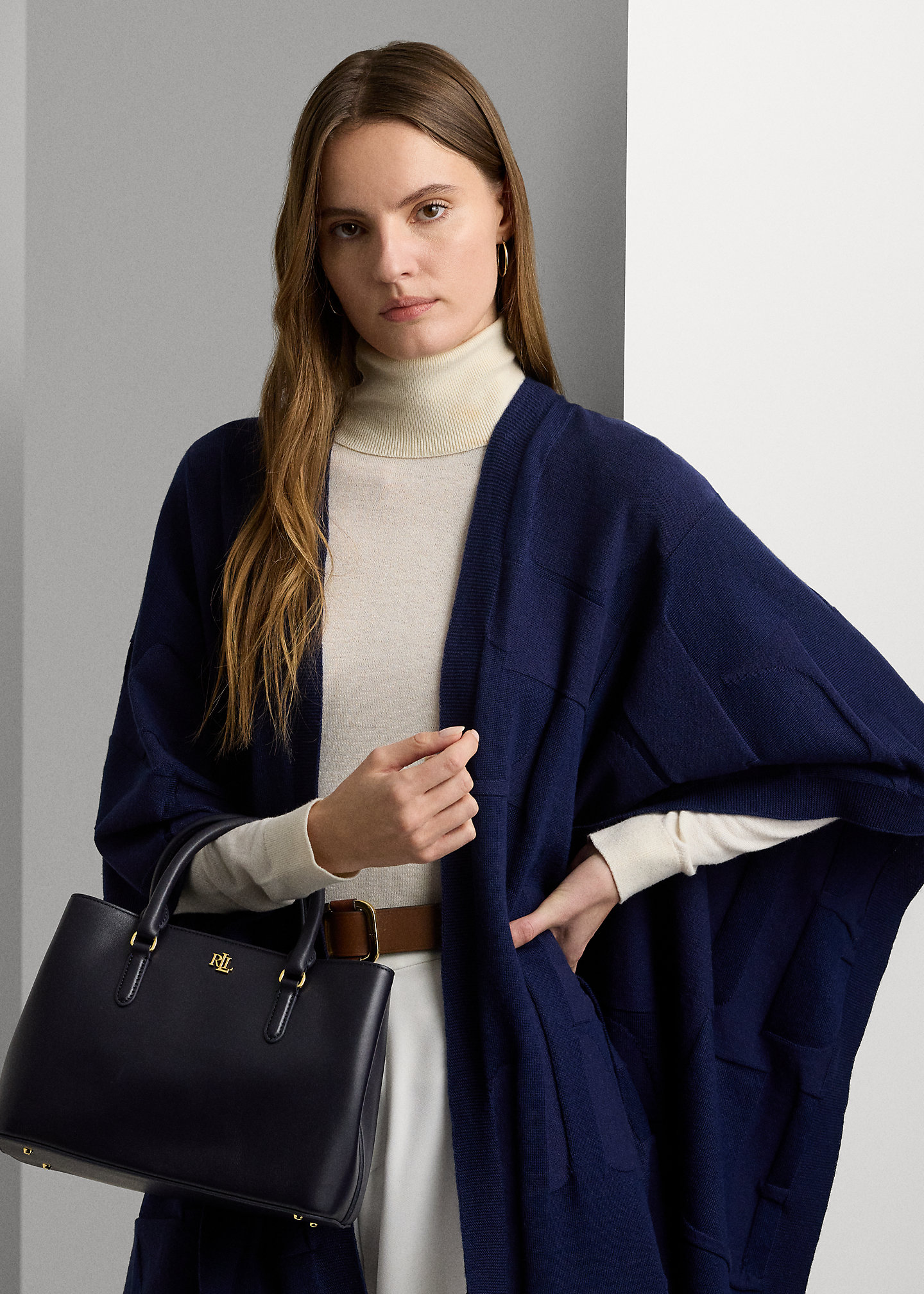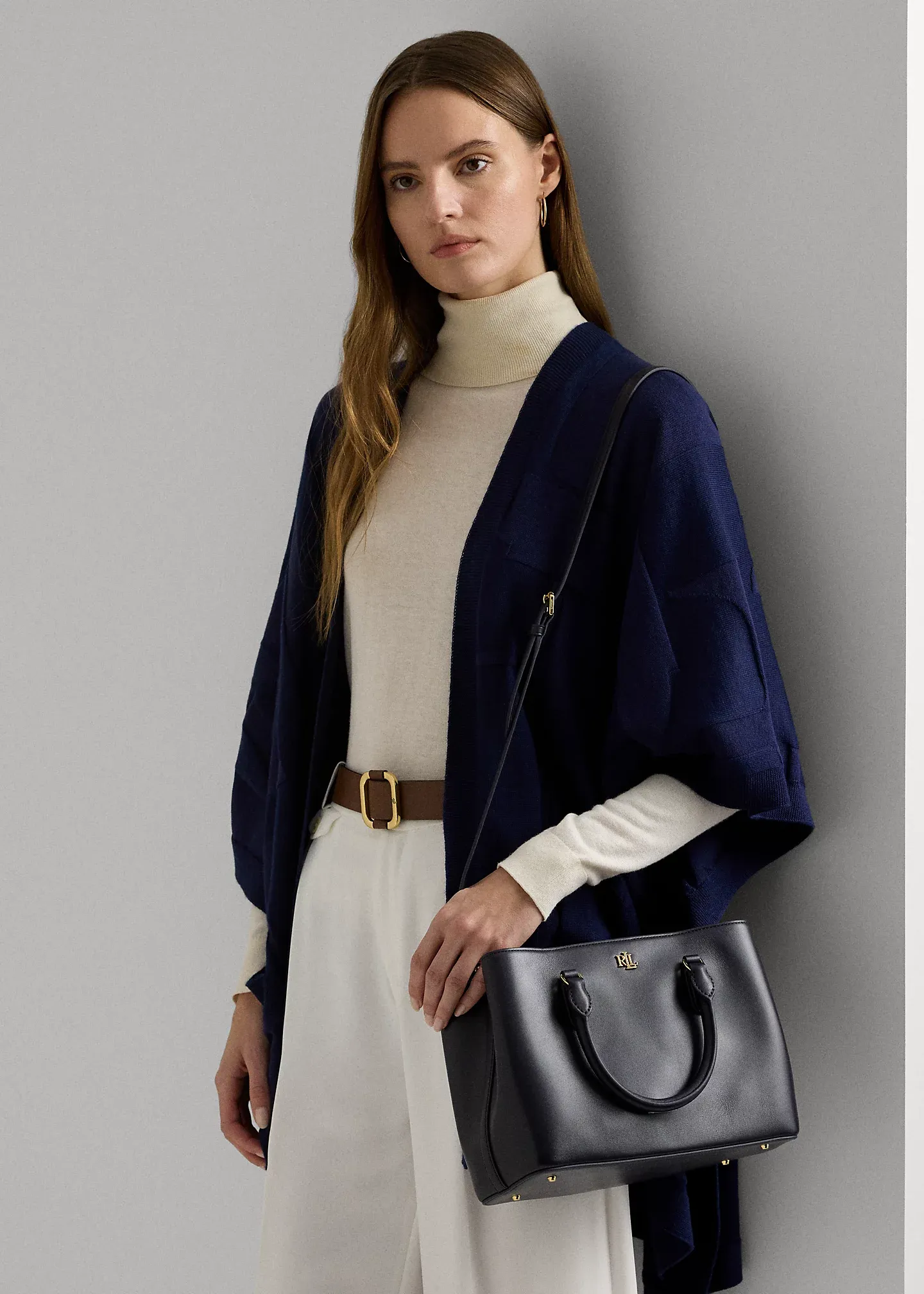 - Dog-clip closure. Polished “LRL” metal logo at the front.