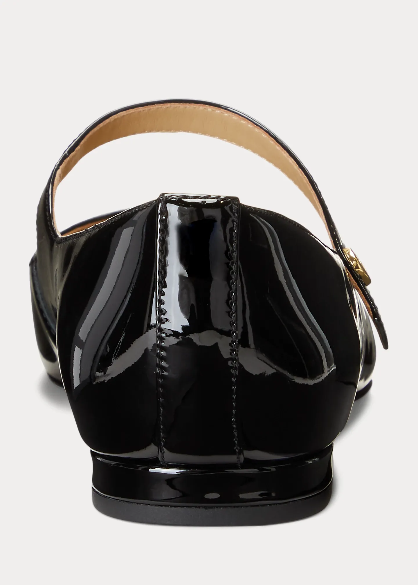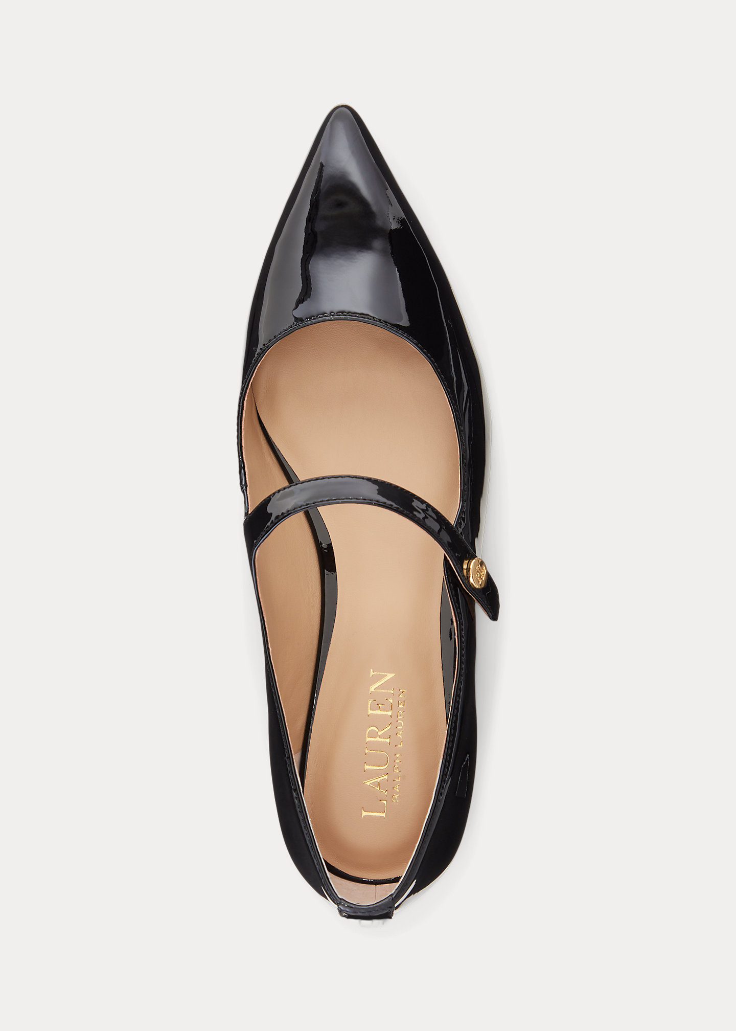 - Strap at the vamp. “LRL”-engraved brass button embellishments.