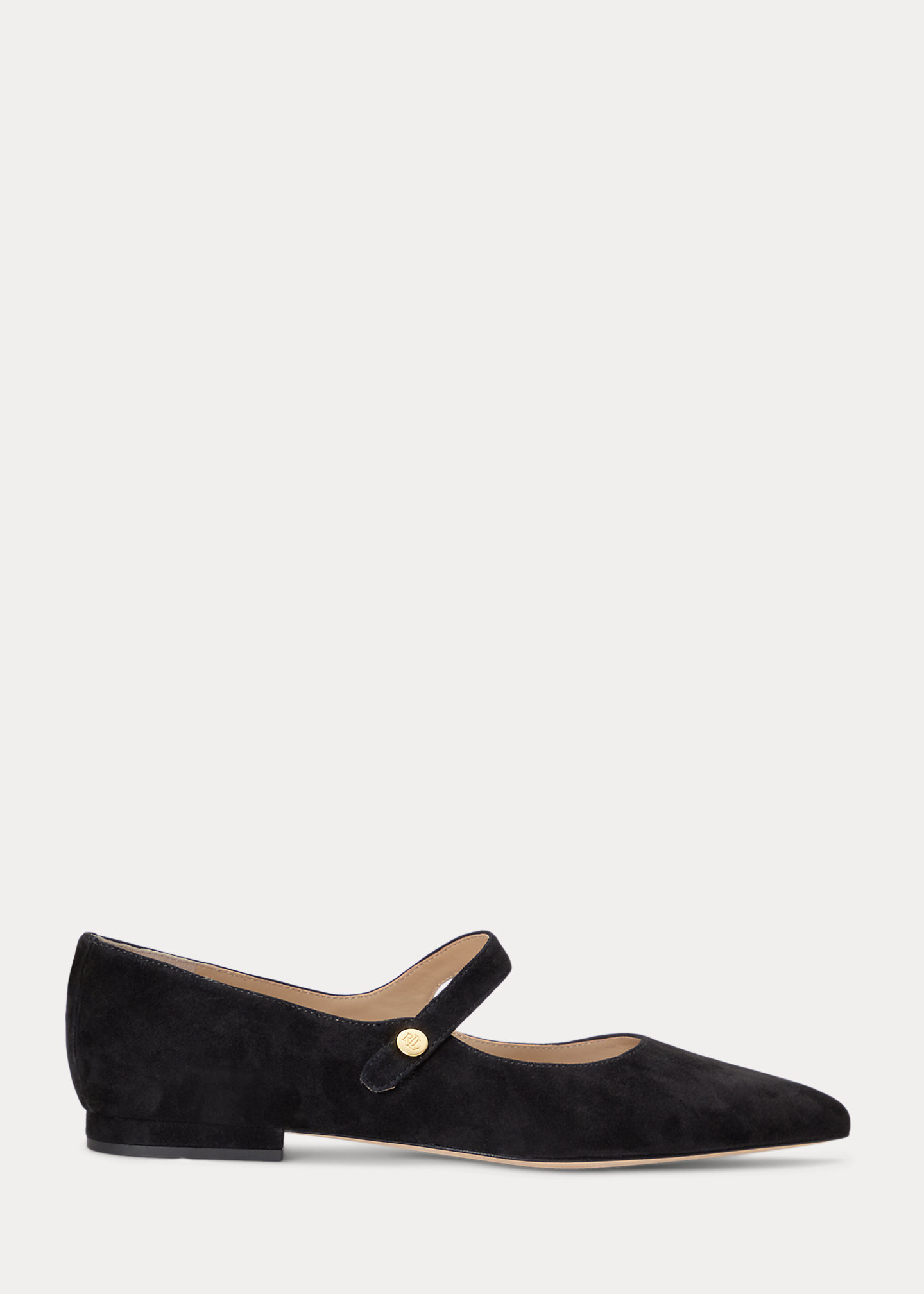 - Strap at the vamp. “LRL”-engraved brass button embellishments.