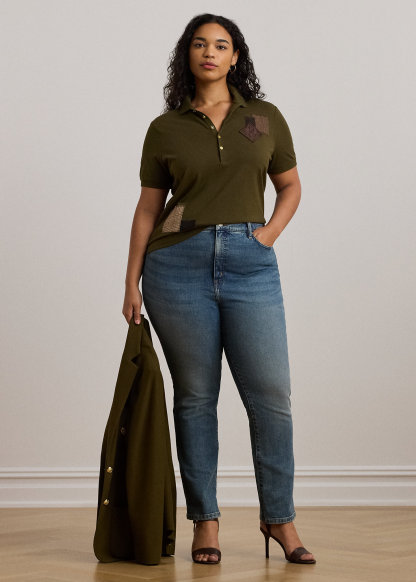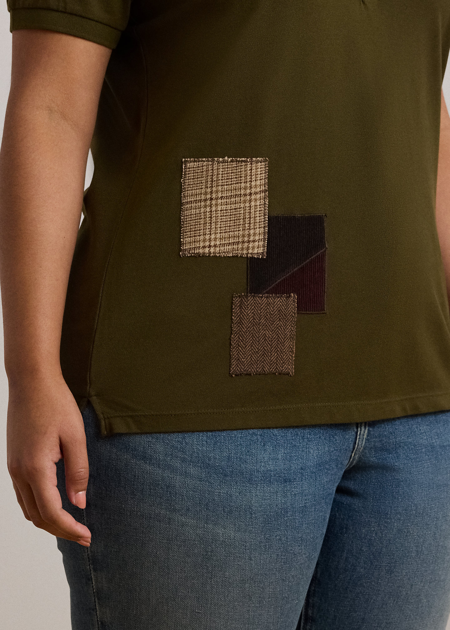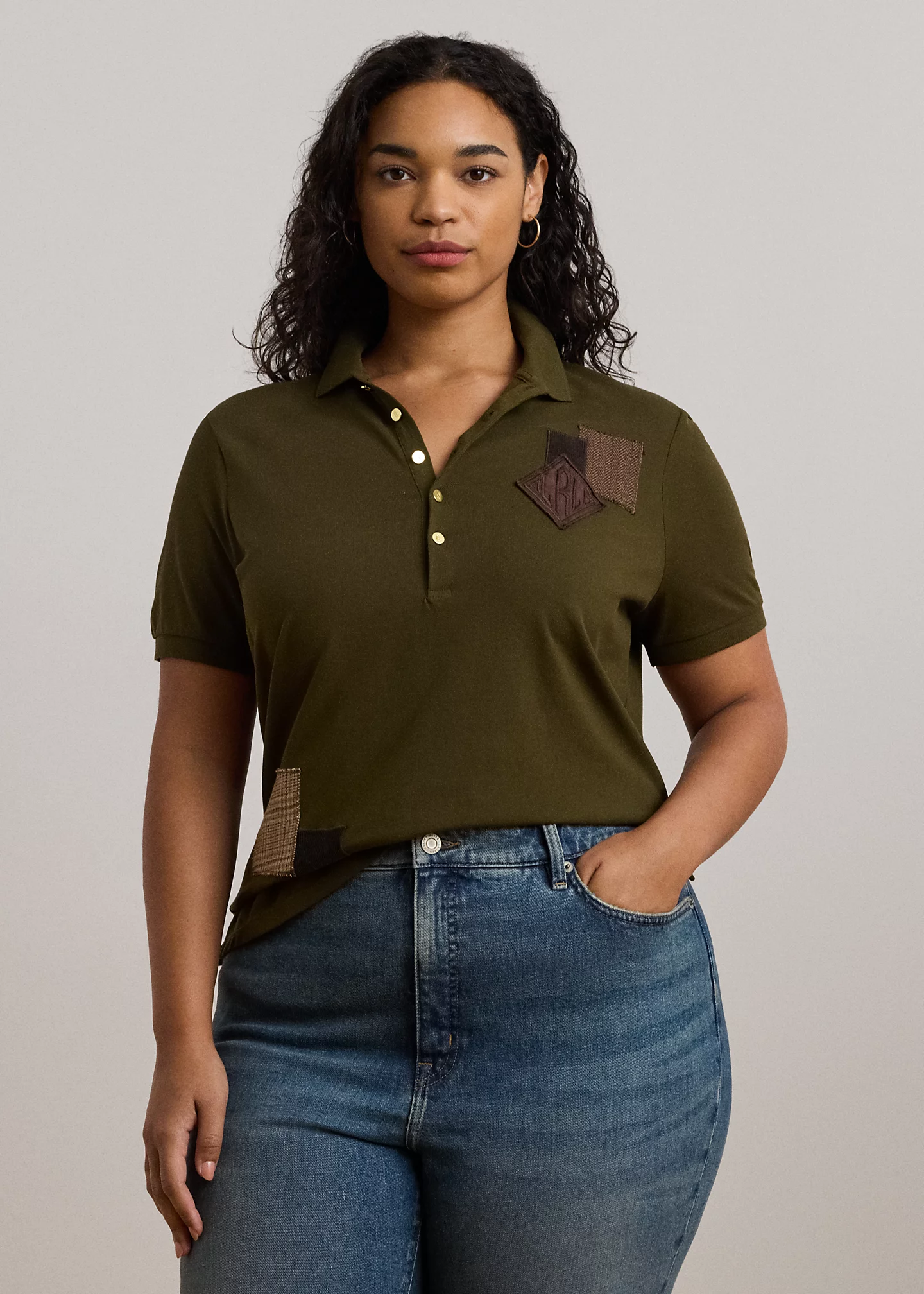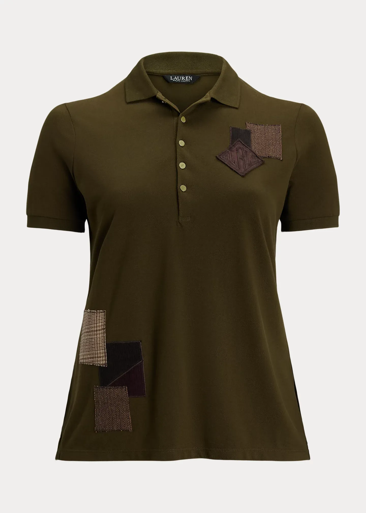 - Short sleeves with ribbed armbands. Patchwork at the front. Diamond-shaped "LRL"-embroidered appliqué logo at the left chest. Side-split hem.