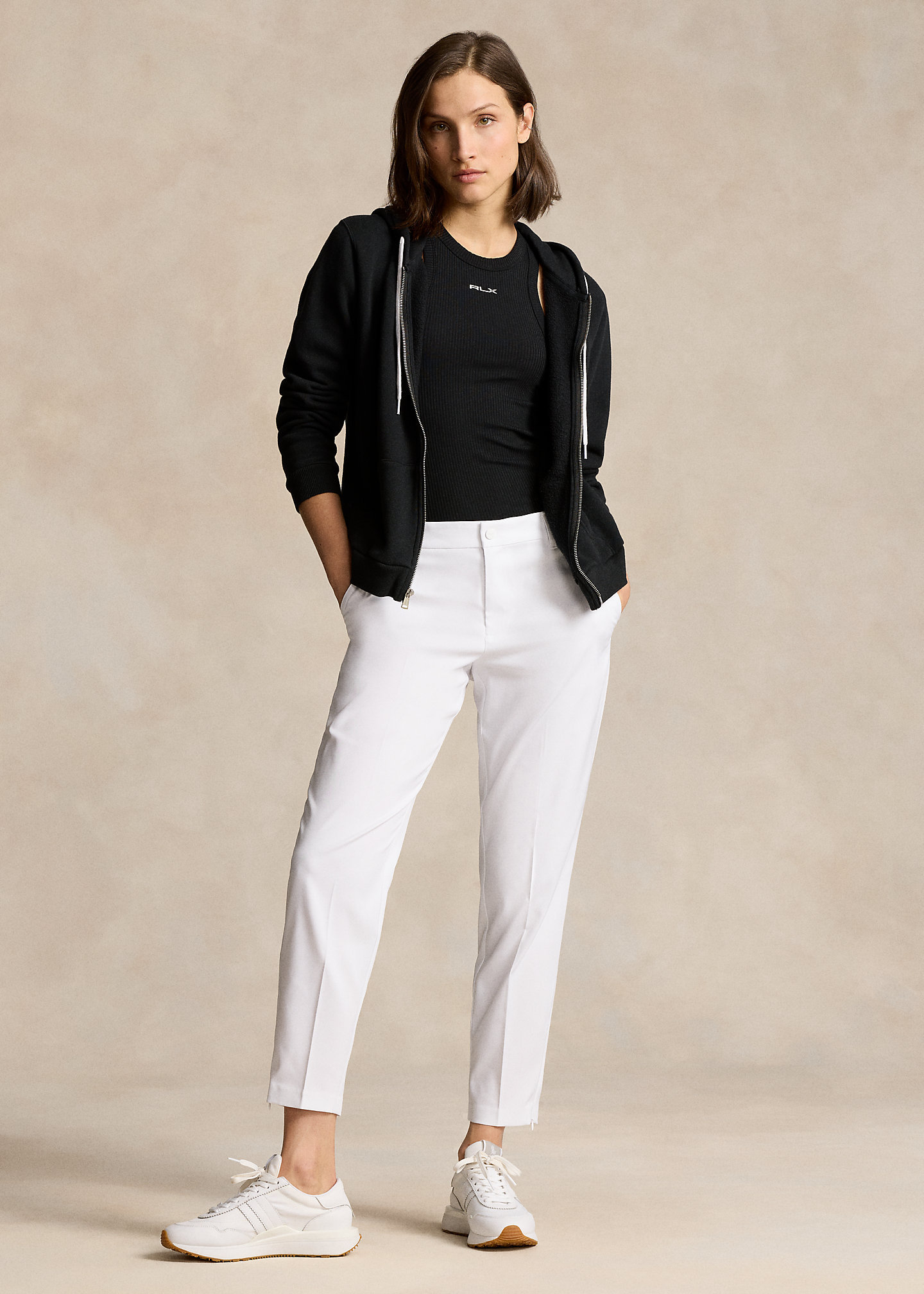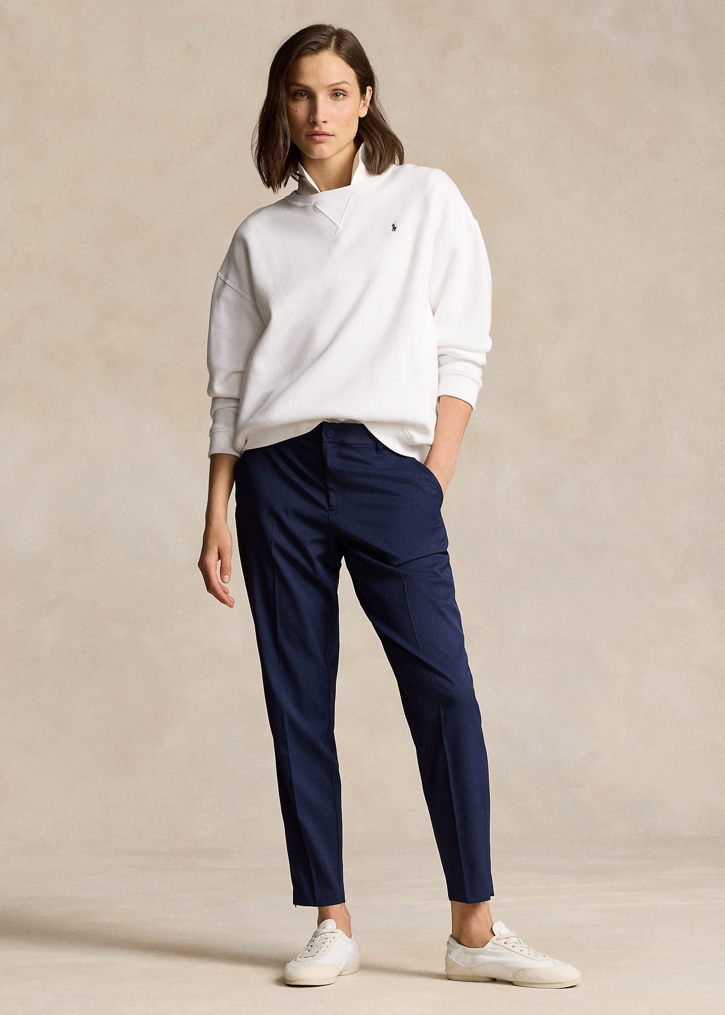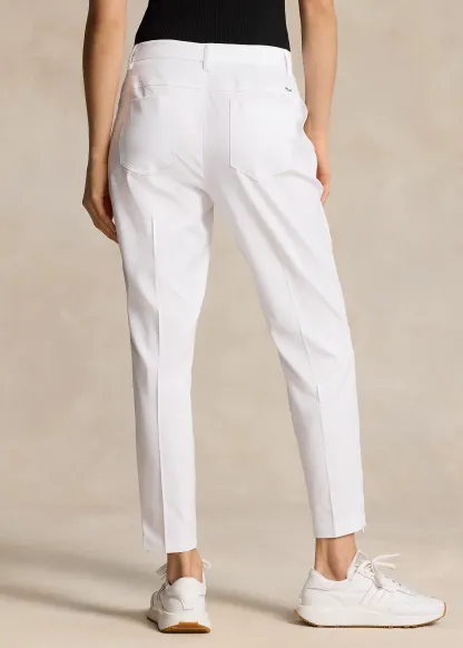 - Mid-rise, slim fit. Intended to hit above the ankle.