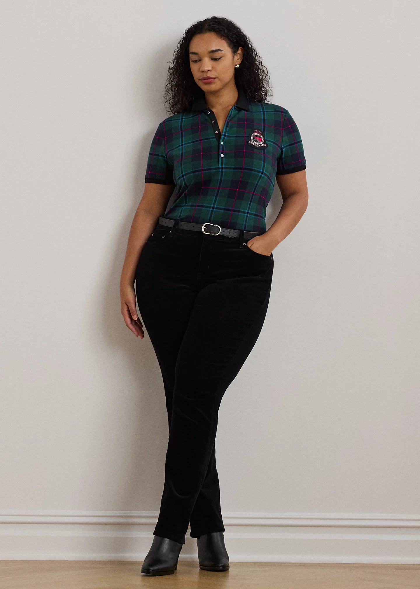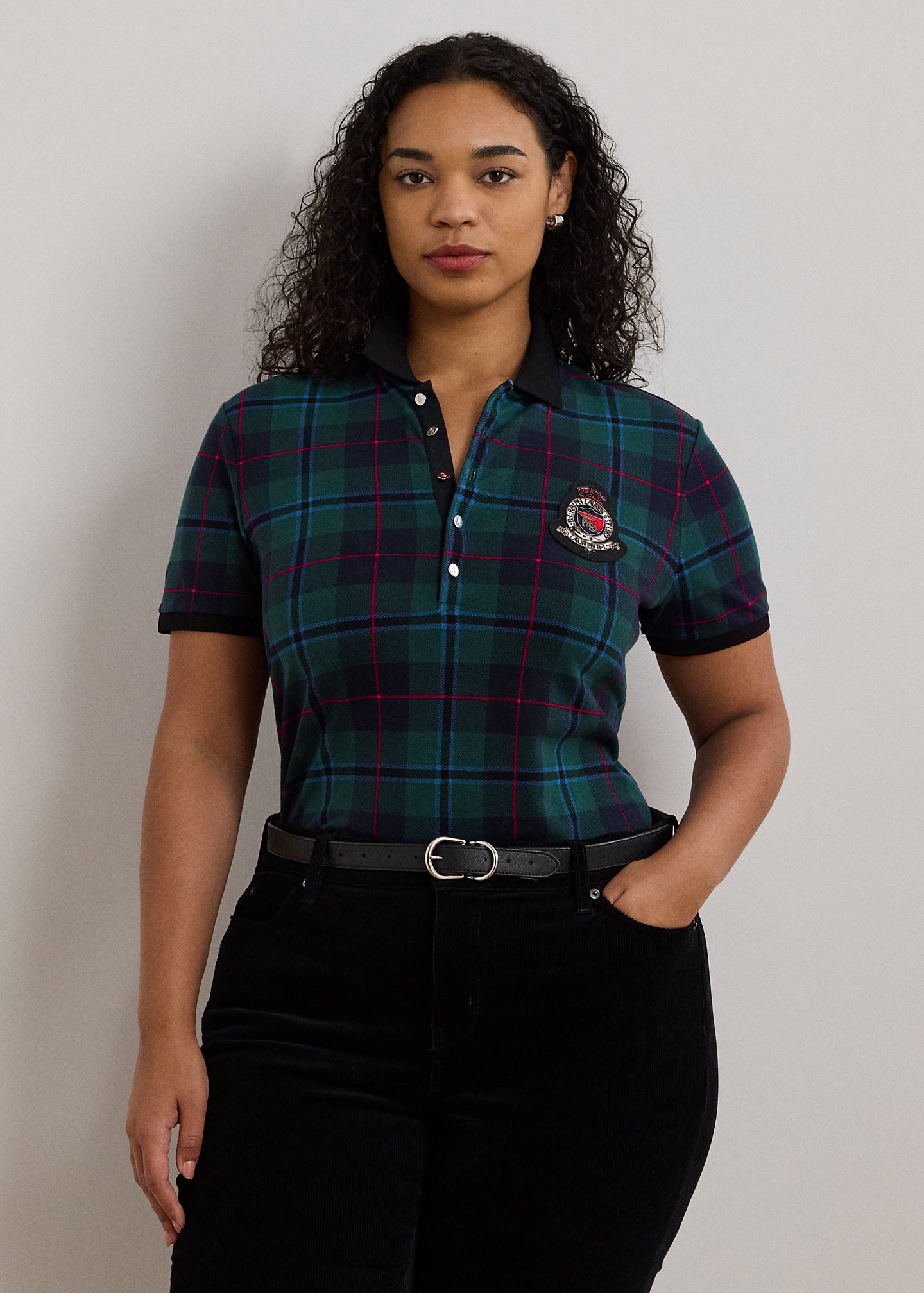 - Short sleeves with ribbed armbands. “LRL LXVII LRL Ralph Lauren est. 1967 Lauren RL” beaded crest at the left chest. Side-split hem.