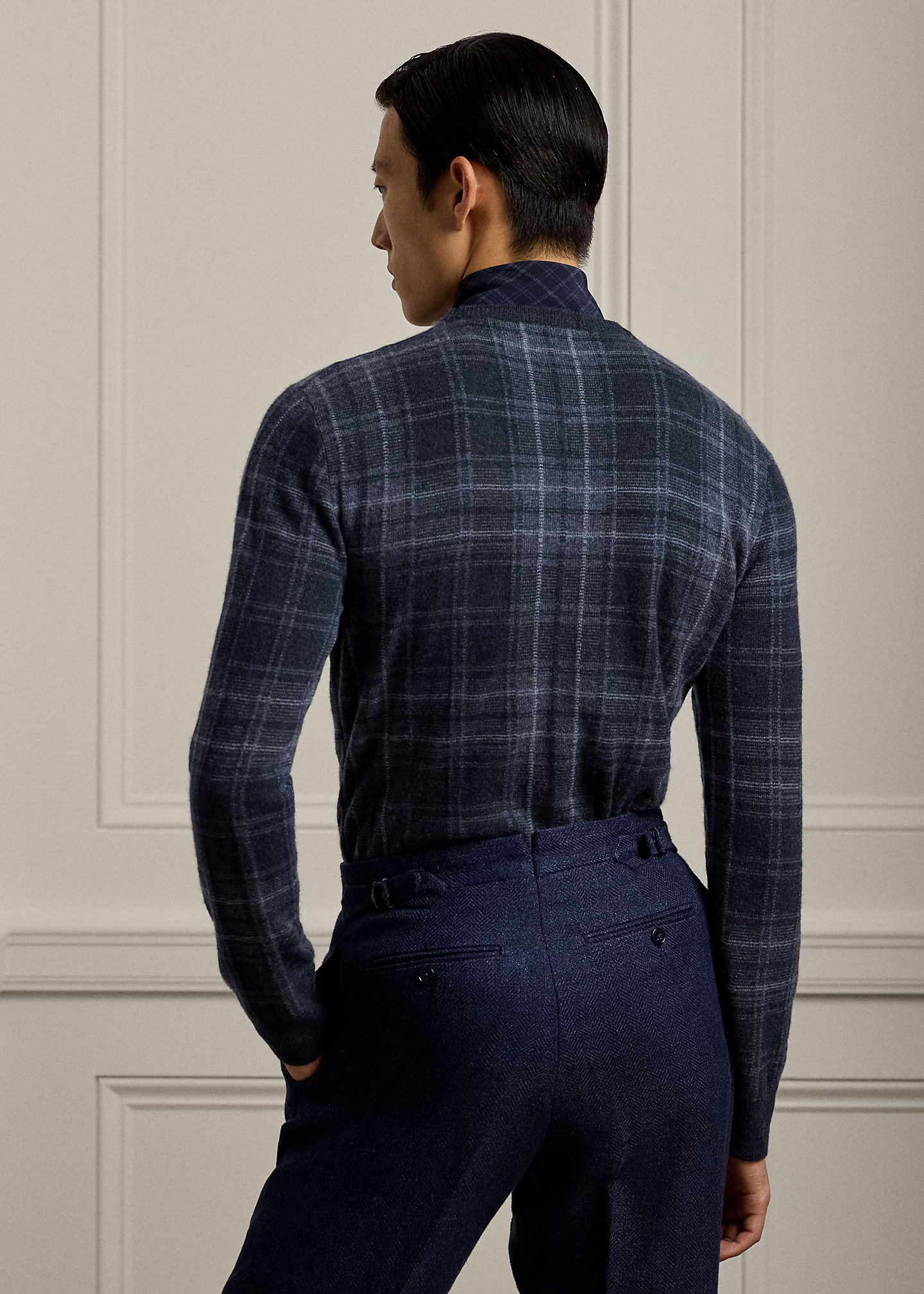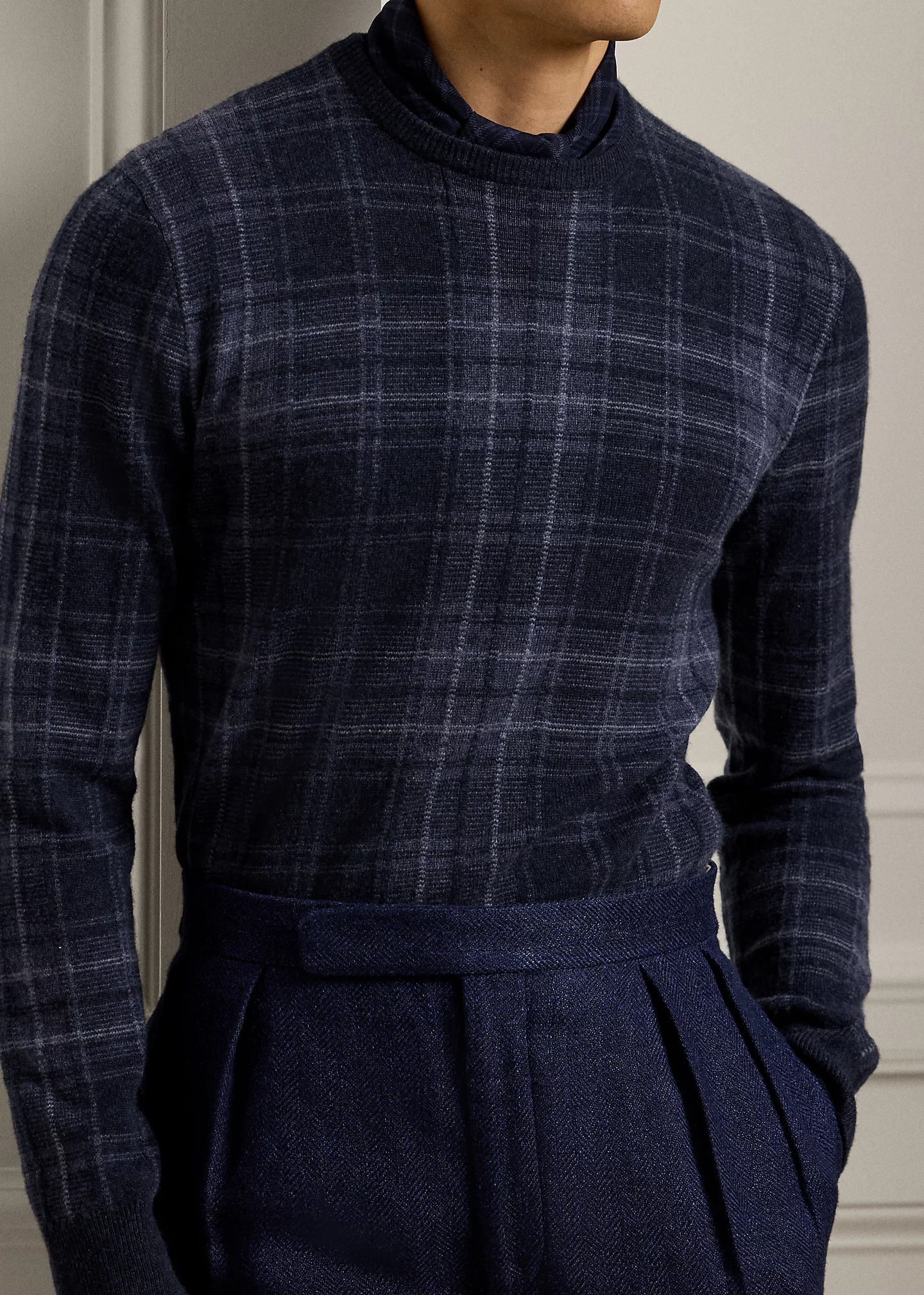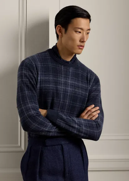 Plaid Cashmere Crewneck Sweater