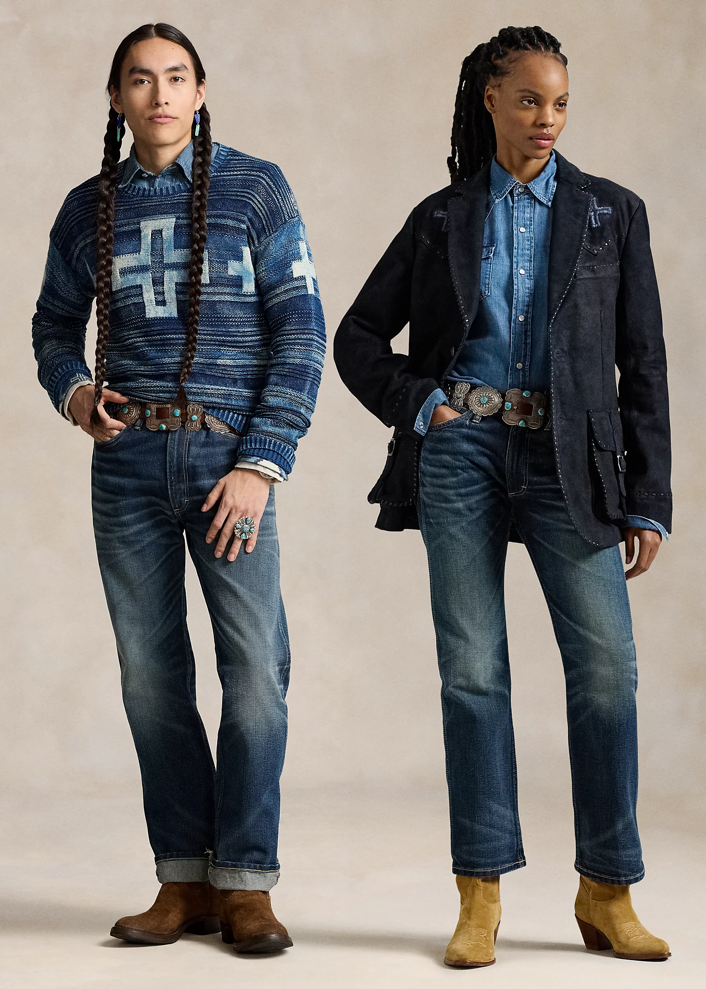 - Custom leather “Polo Ralph Lauren & Co Naiomi Glasses” patch with four-directional crosses at the back right waist.