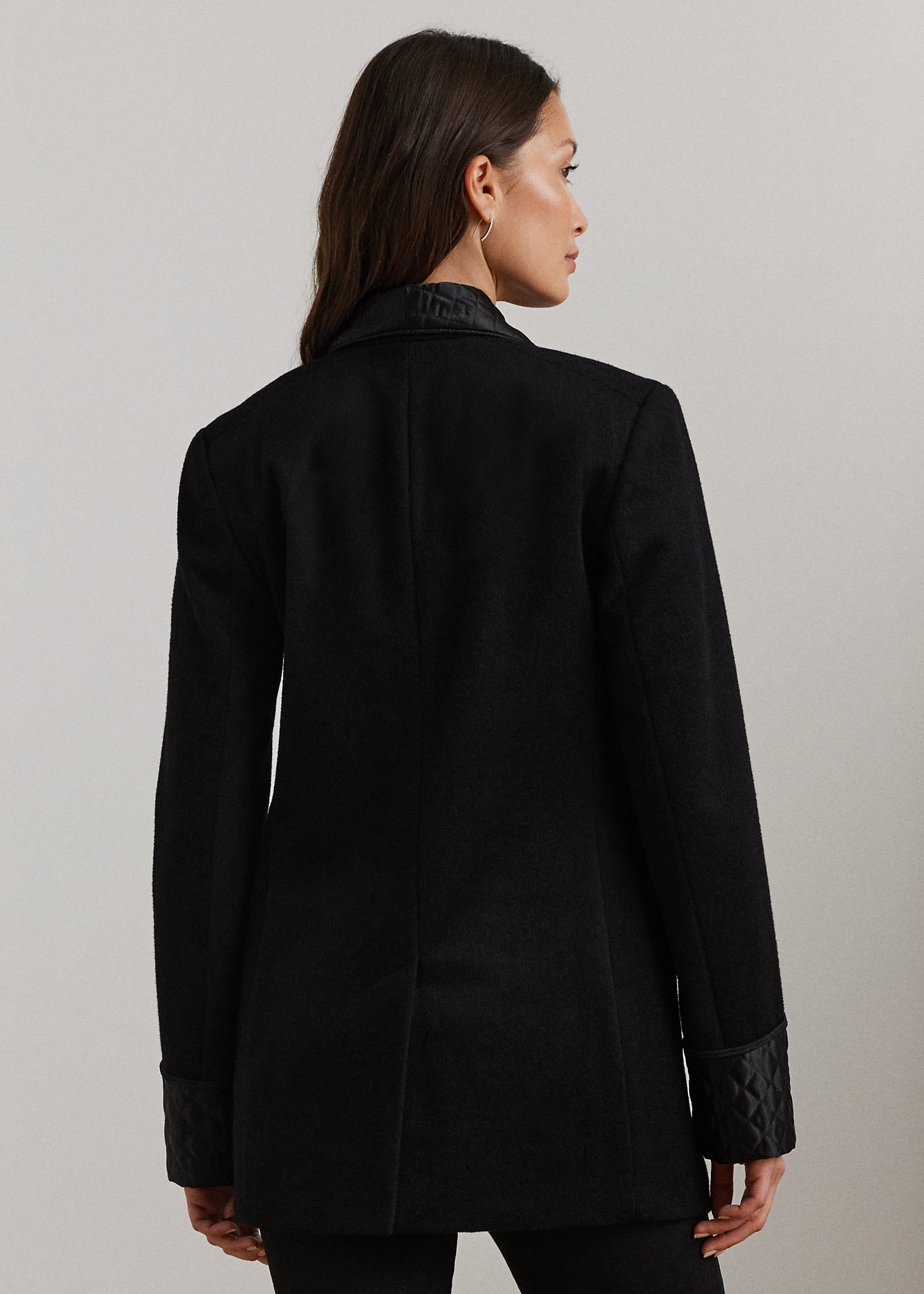 Quilted-Satin-Trim Wool-Blend Coat
