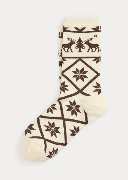 - Reindeer-and-tree motif and “RL” knit at the outer sides.