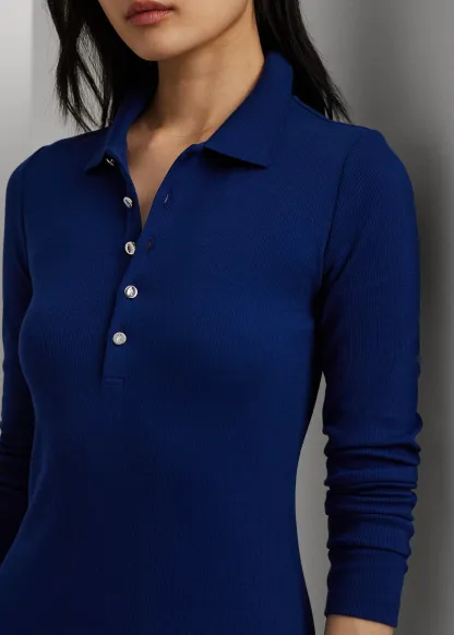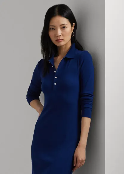Rib-Knit Cotton-Blend Polo Dress