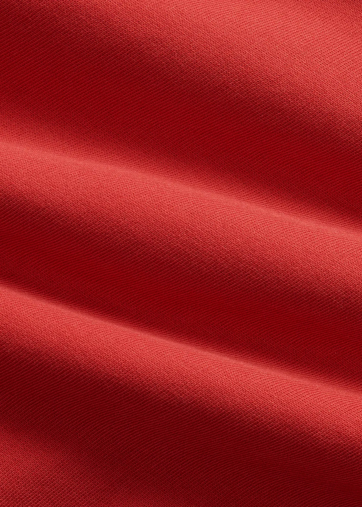 - Crewneck with a ribbed double V-inset. Drawstring hood.