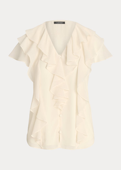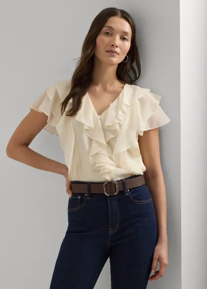 Ruffle-Trim Crinkle Georgette Blouse