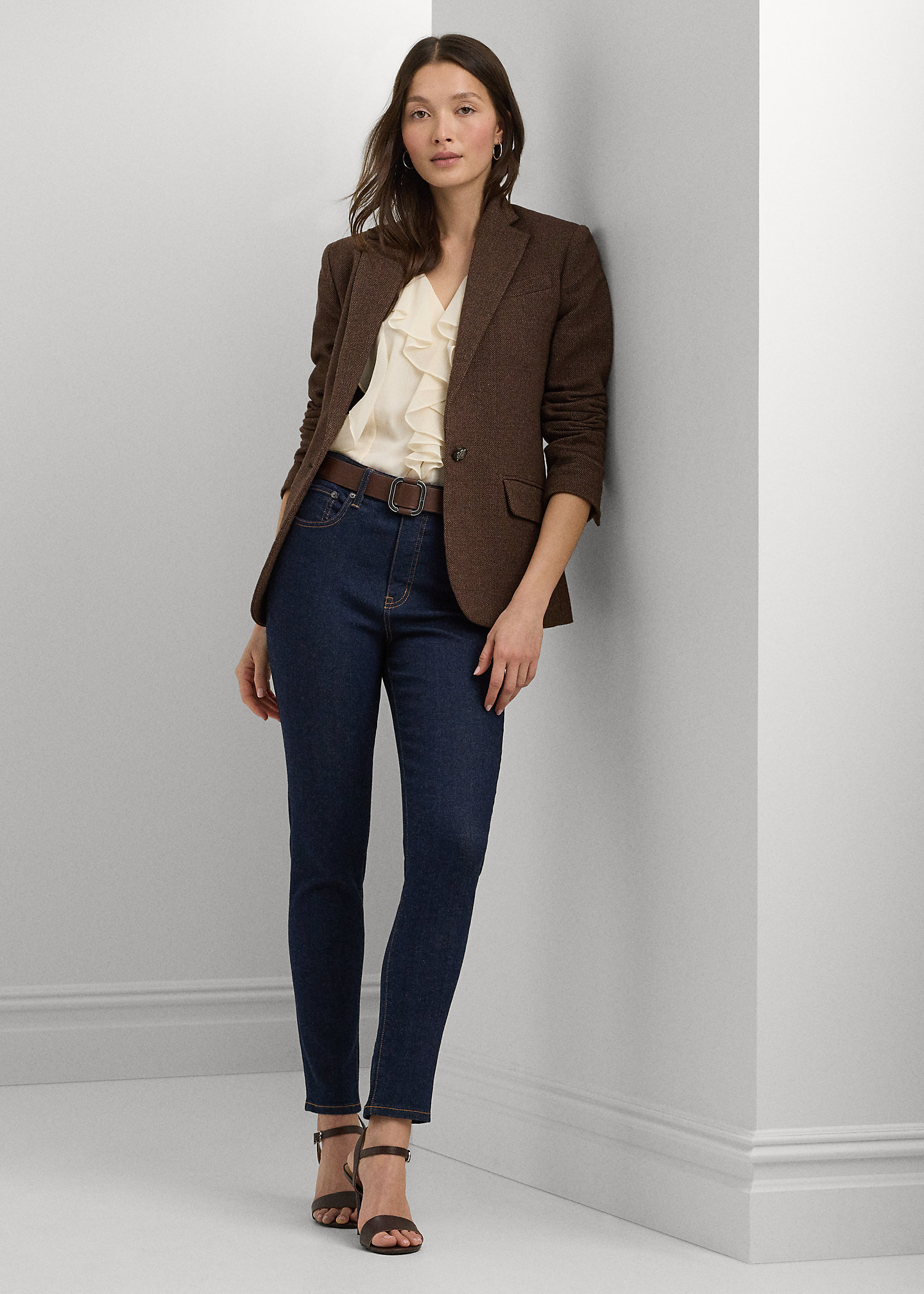 - Straight fit. Intended to hit at the hip.