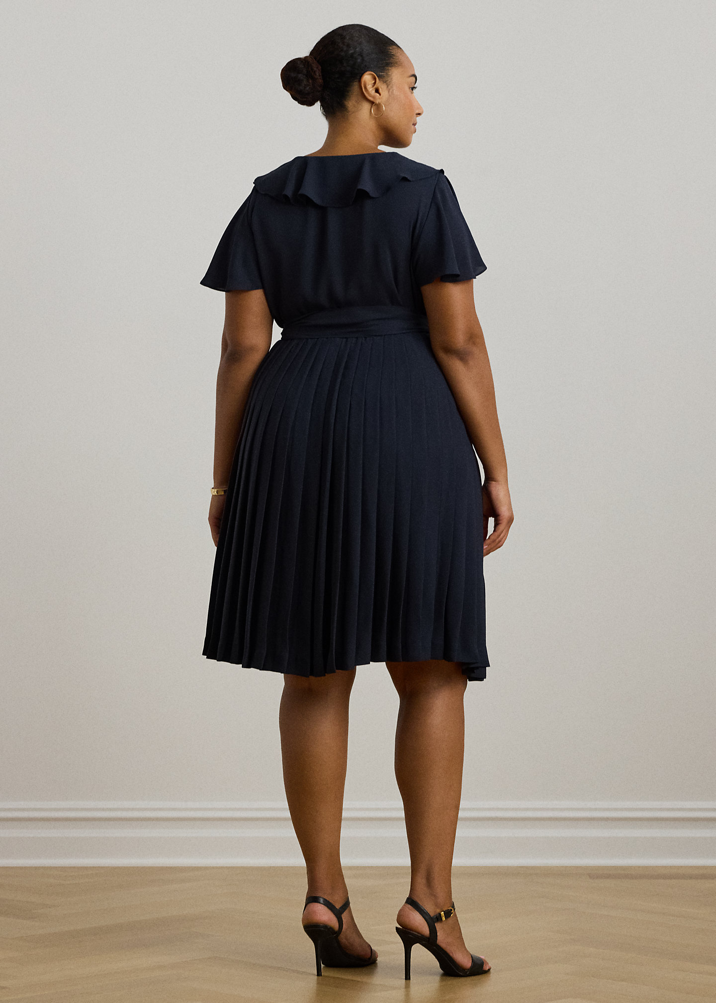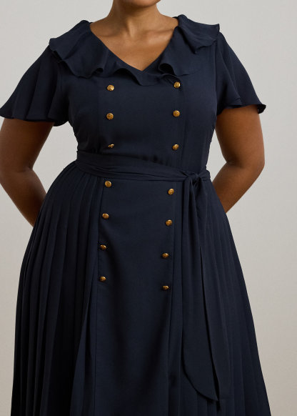 Ruffle-Trim Pleated Georgette Dress