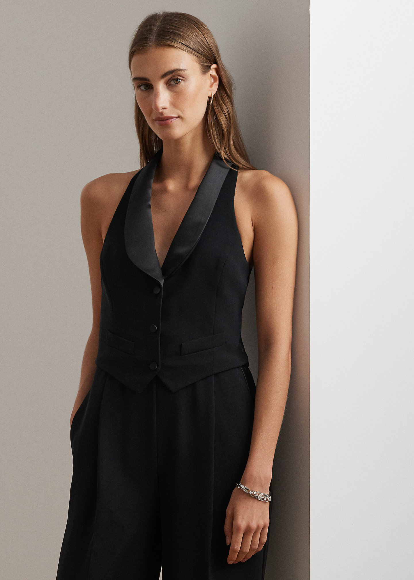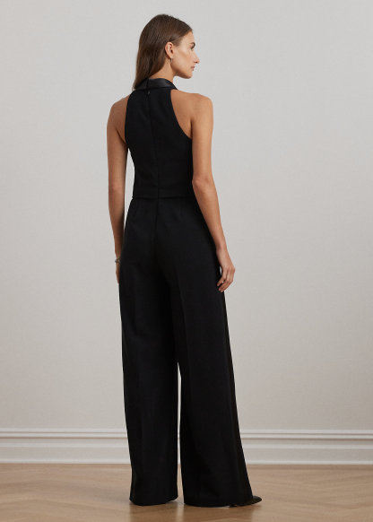 Satin-Trim Crepe Sleeveless Jumpsuit