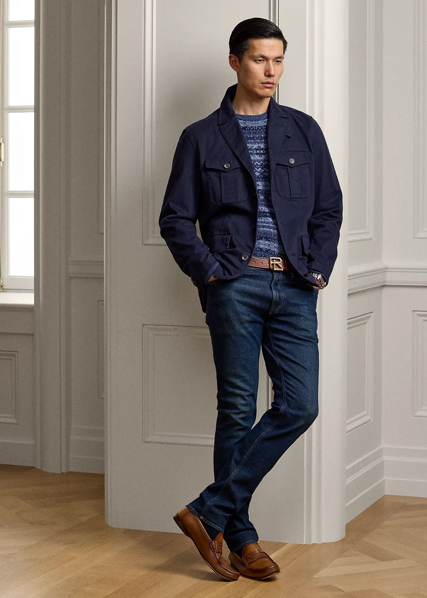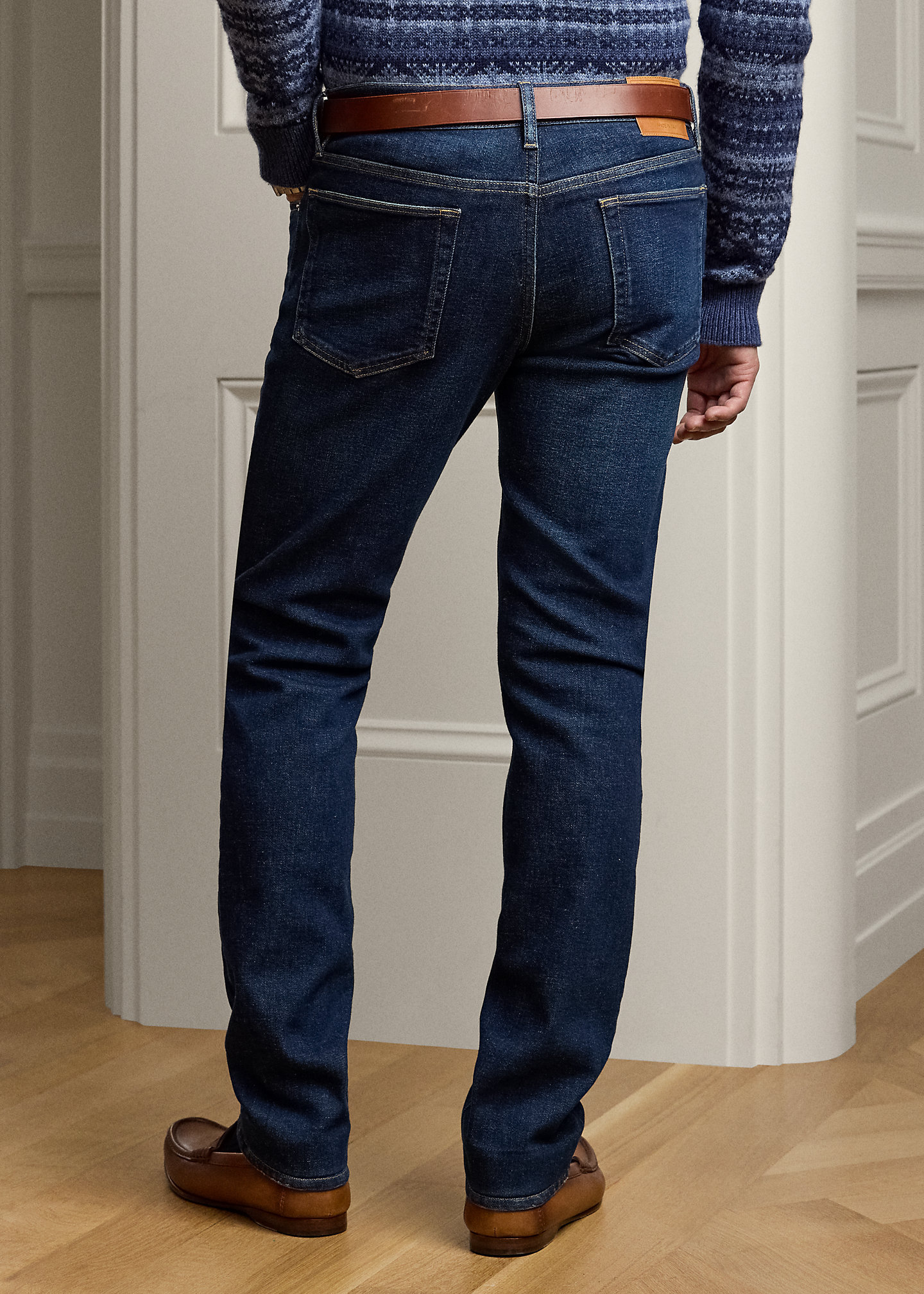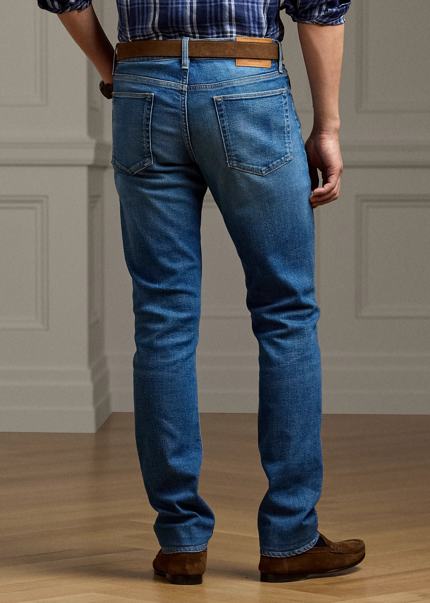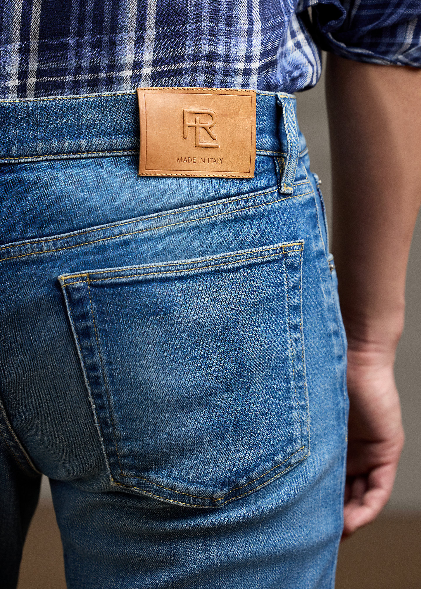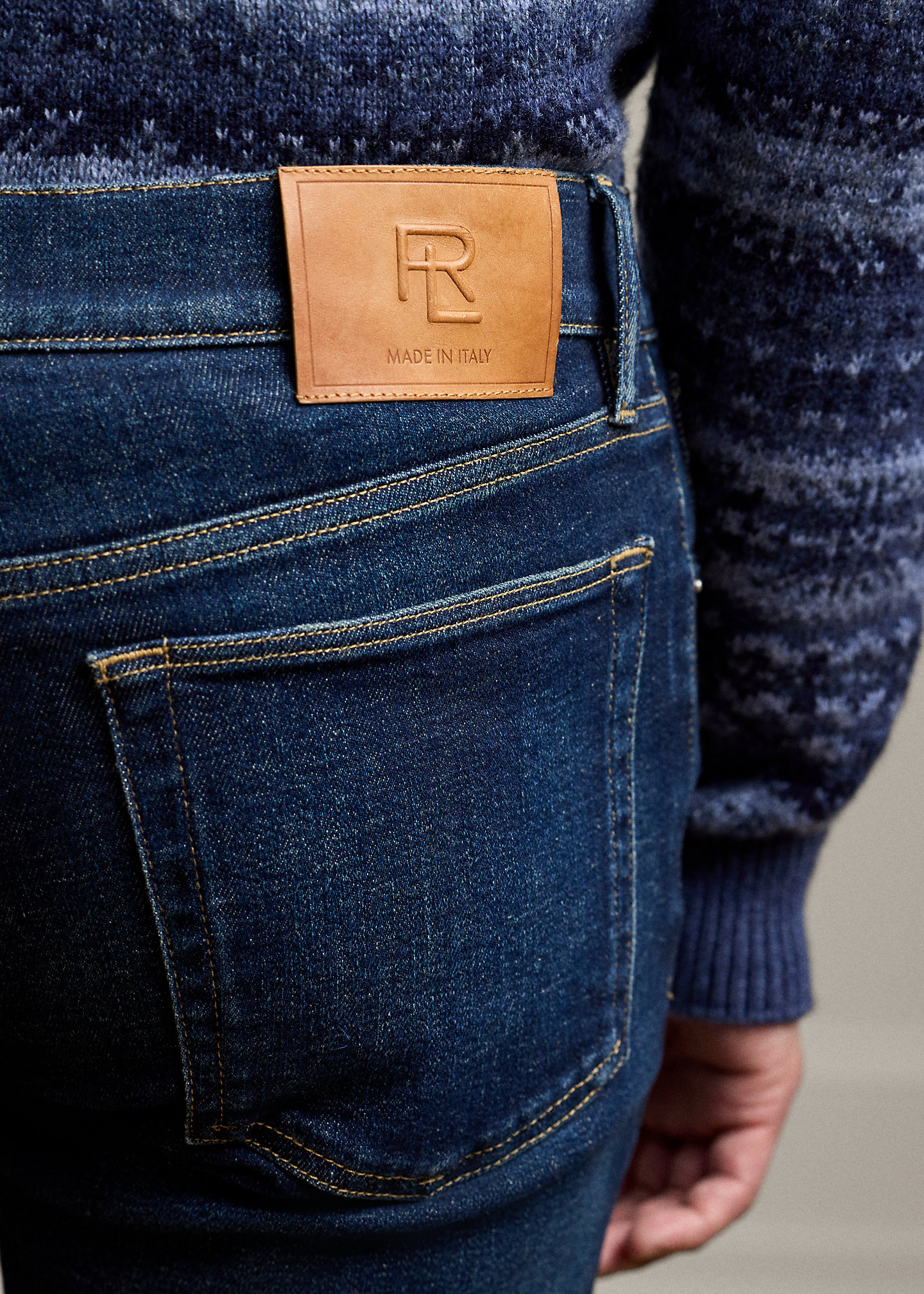 - Leather “Made in Italy” patch with the stacked RL logo at the back right waist.