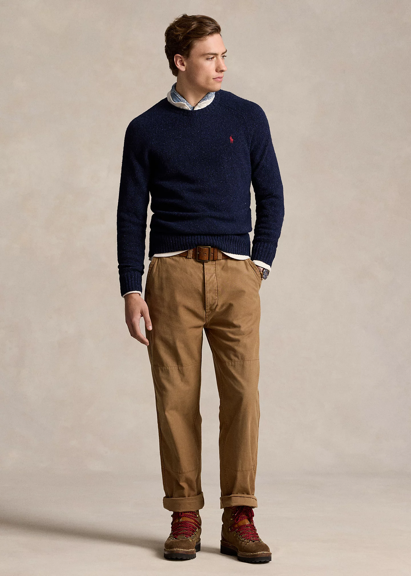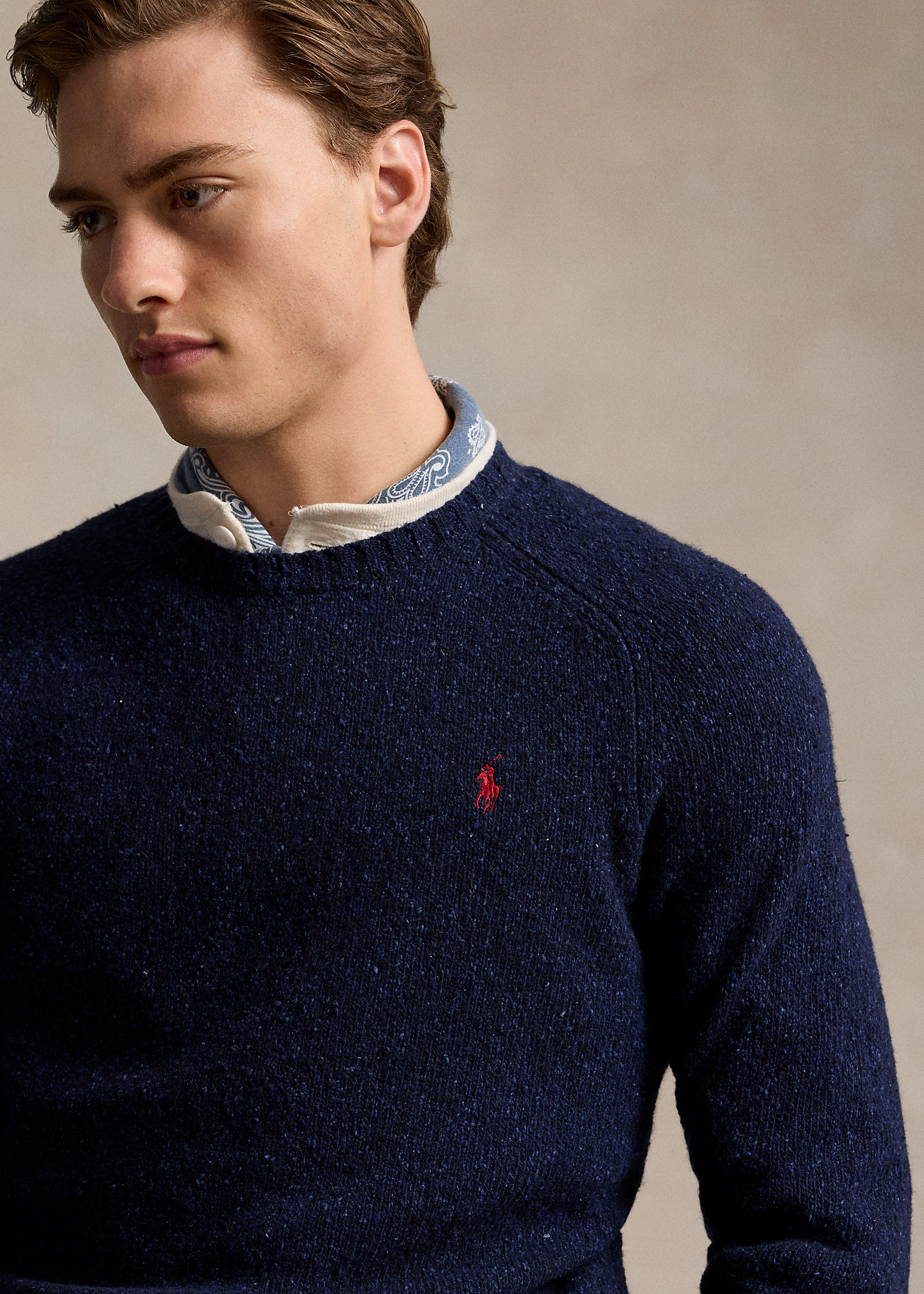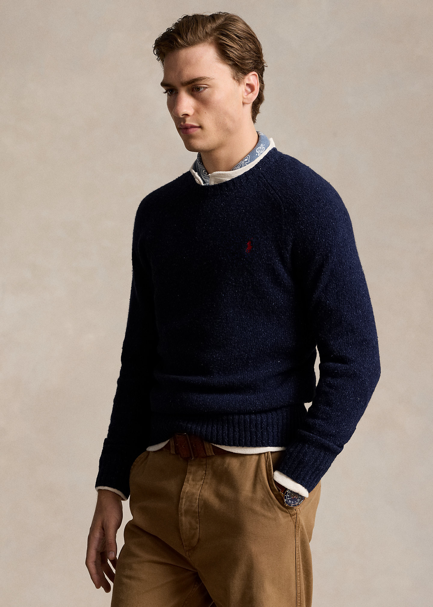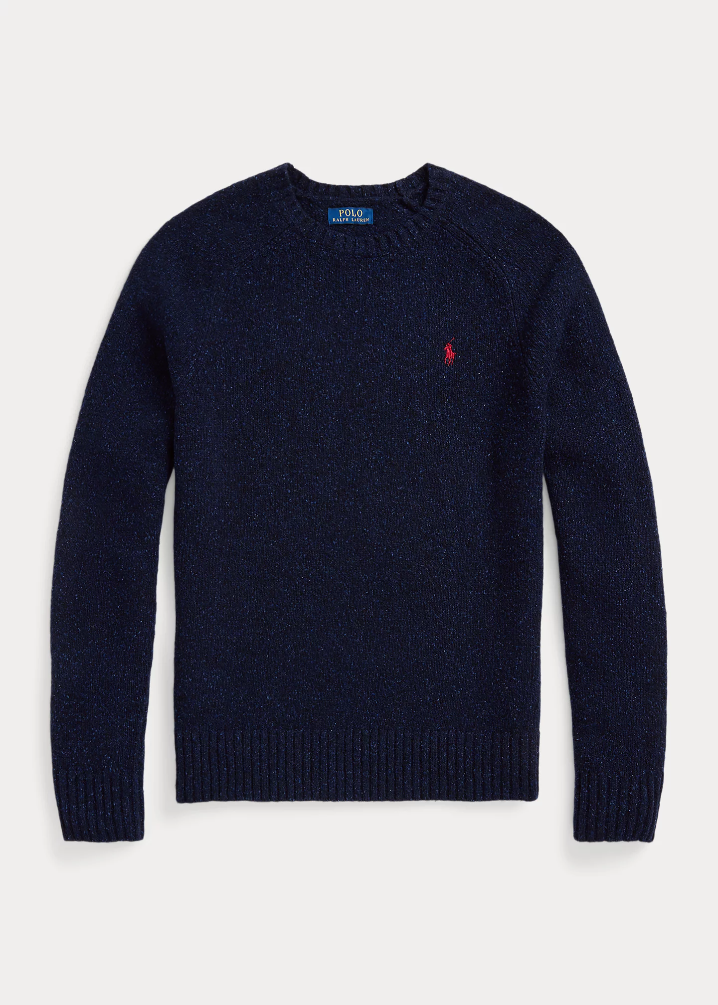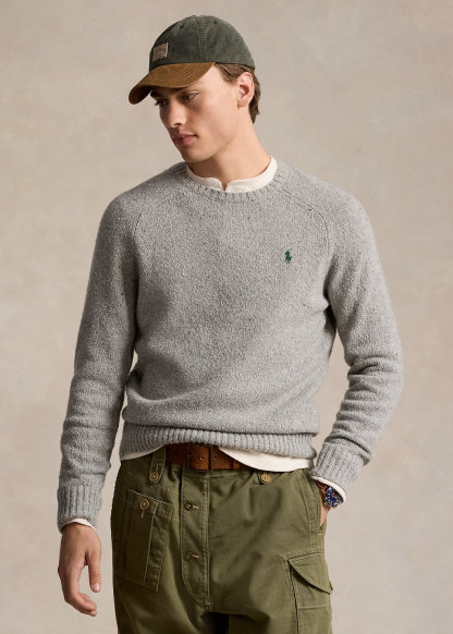 - Crewneck. Long saddle sleeves with rib-knit cuffs.