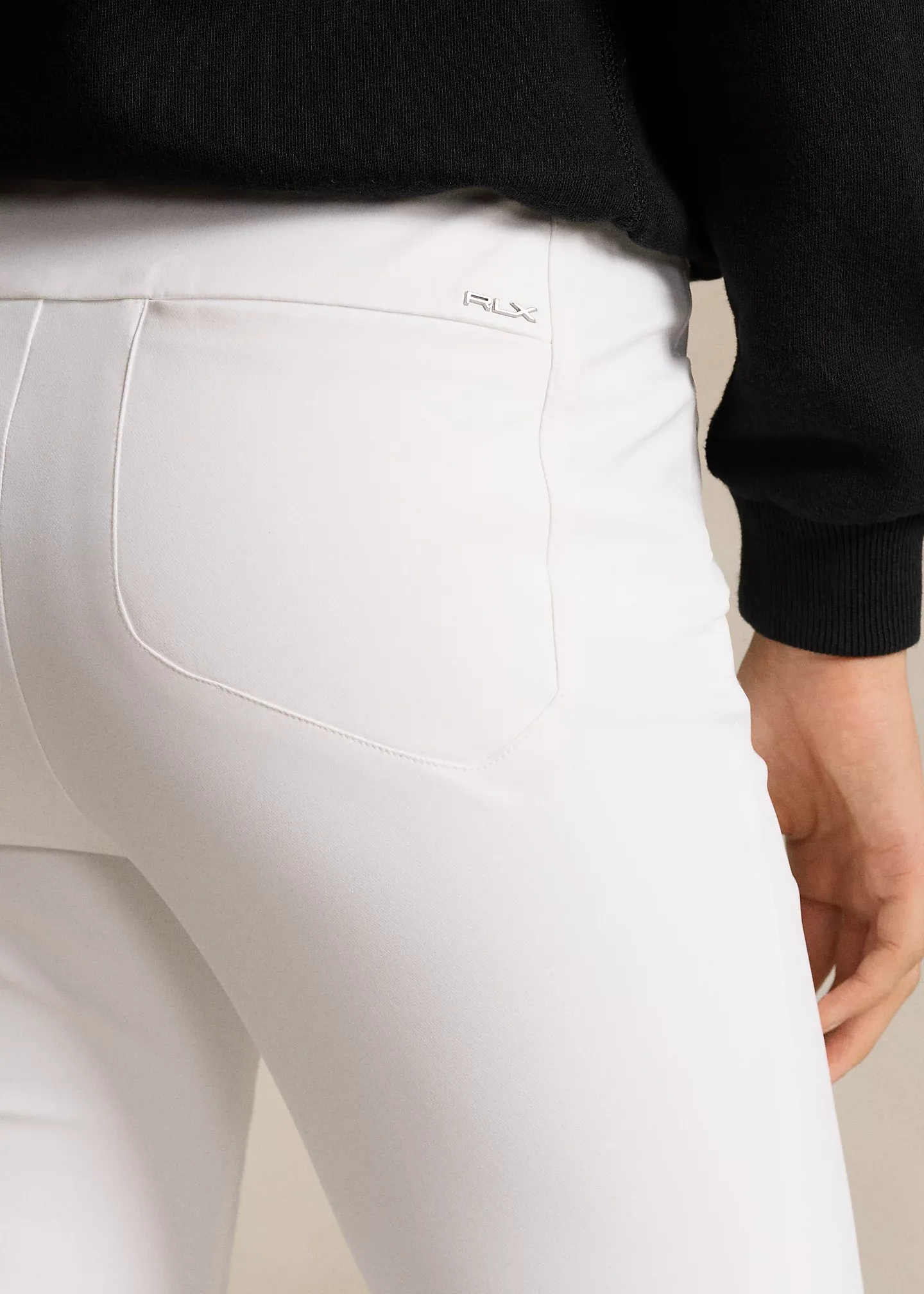- "RLX" rivets below the front pockets and metal pin above the back right pocket.