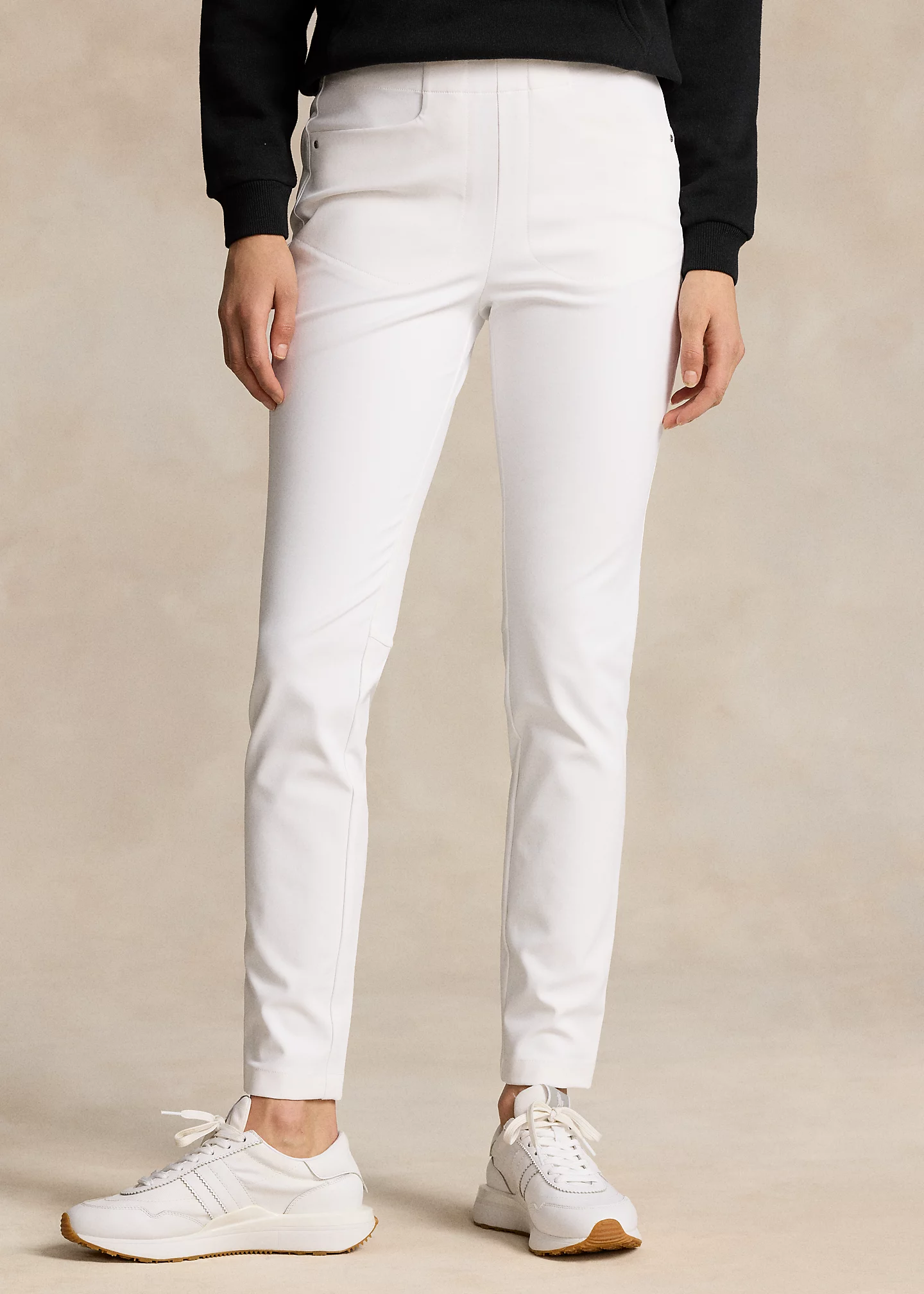 - Mid-rise. Slim fit. Intended to hit at the ankle.